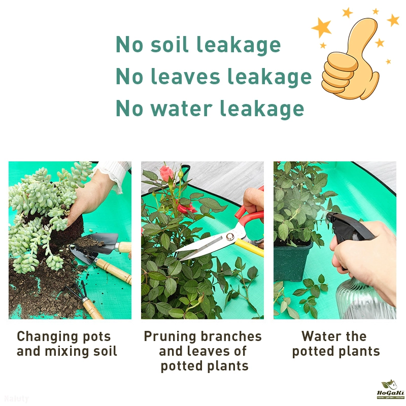 1. The plant potting mat is made of waterproof PE material, which can prevent water stains from leaking on the floor when planting and watering for your plants.