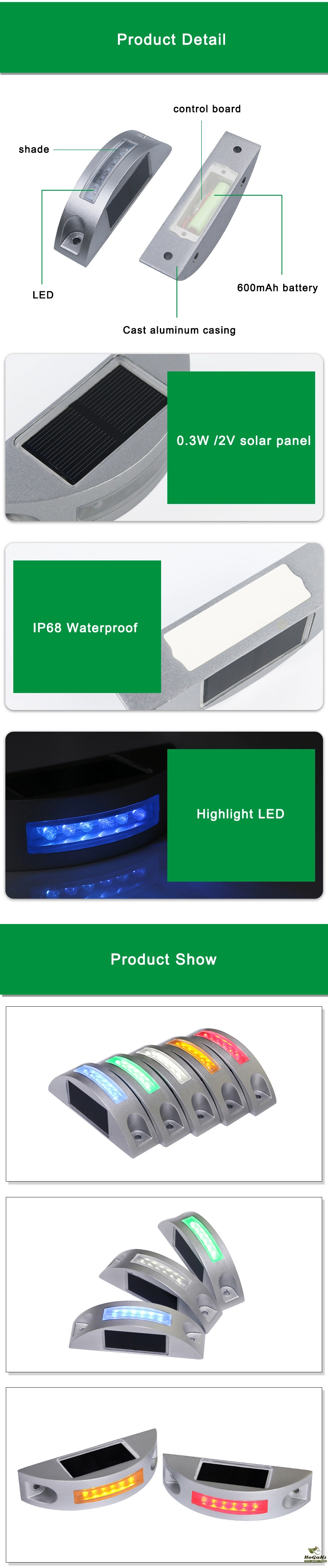 This road stud light is designed to guide vehicle and pedestrian to right direction.