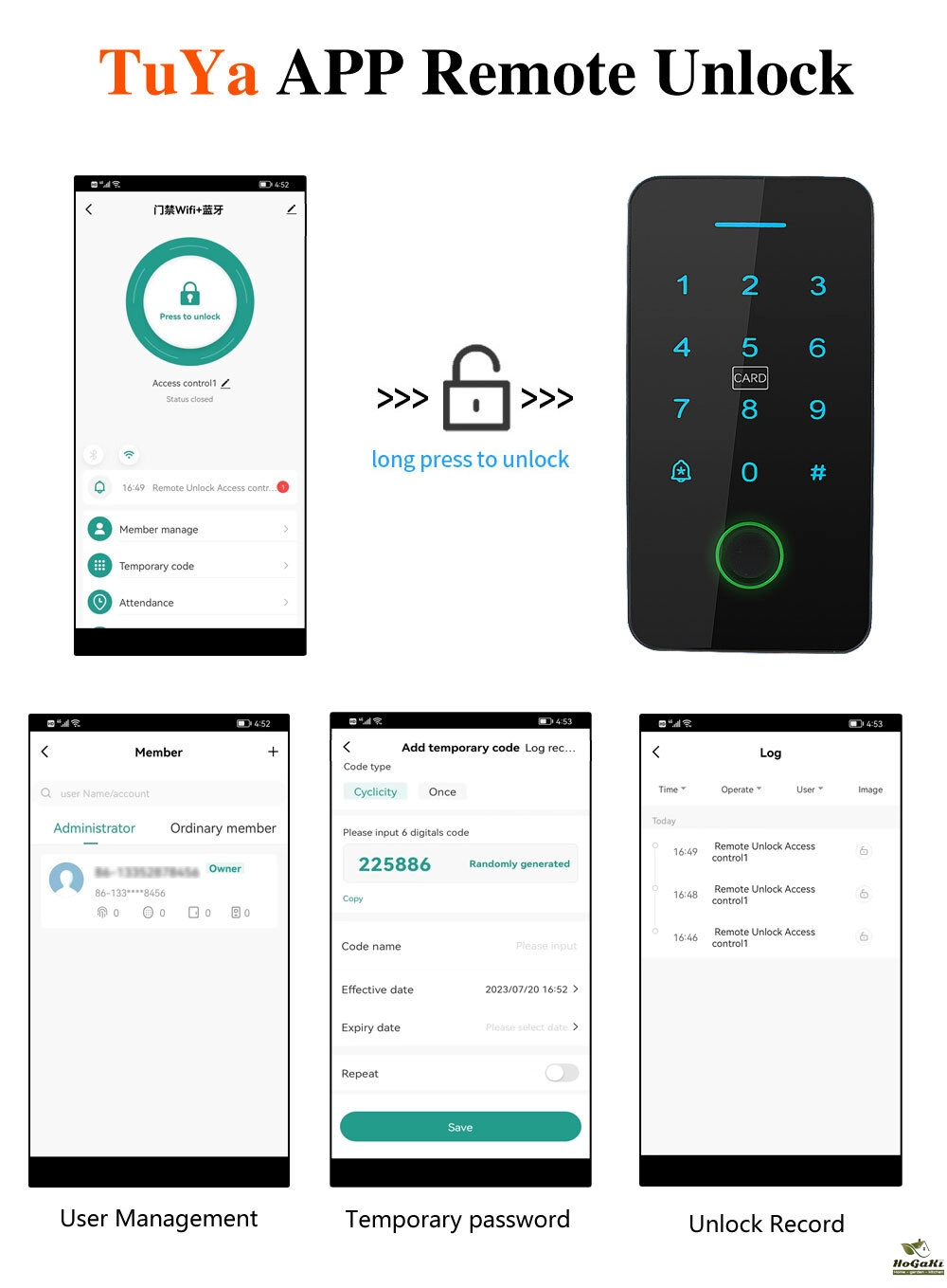 Record capacity: Mobile phone APP remotely view the latest 10000 lock opening information.