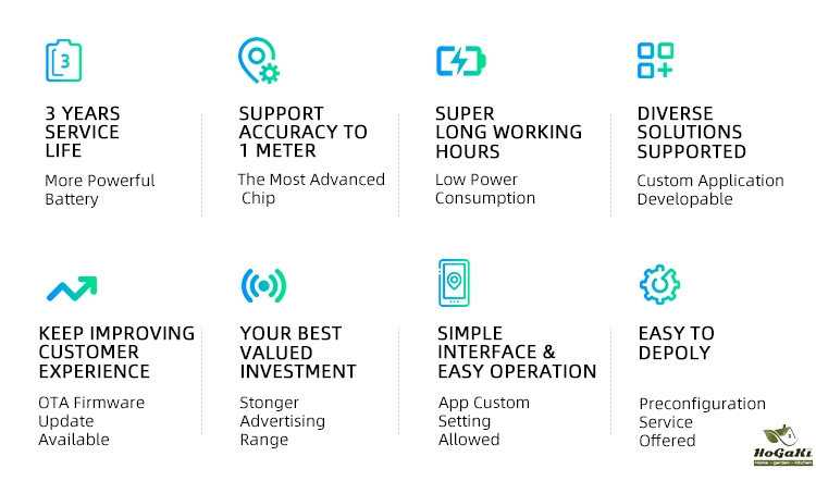 Battery Long Service Life | Equipped with replaceable CR2477 battery, the AK51 can last a minimum of 1 years on standard settings (Interval 700ms, Tx Power=-8dBm). | |||