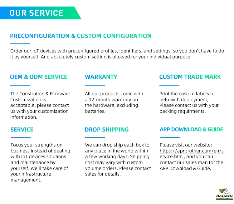 Transmit Power | -20dBm,-8dBm,0dBm,4dBm | Device Name | Aikaka_xxxxxx,(PS:"xxxxxx" are last 2 bytes of mac address) |