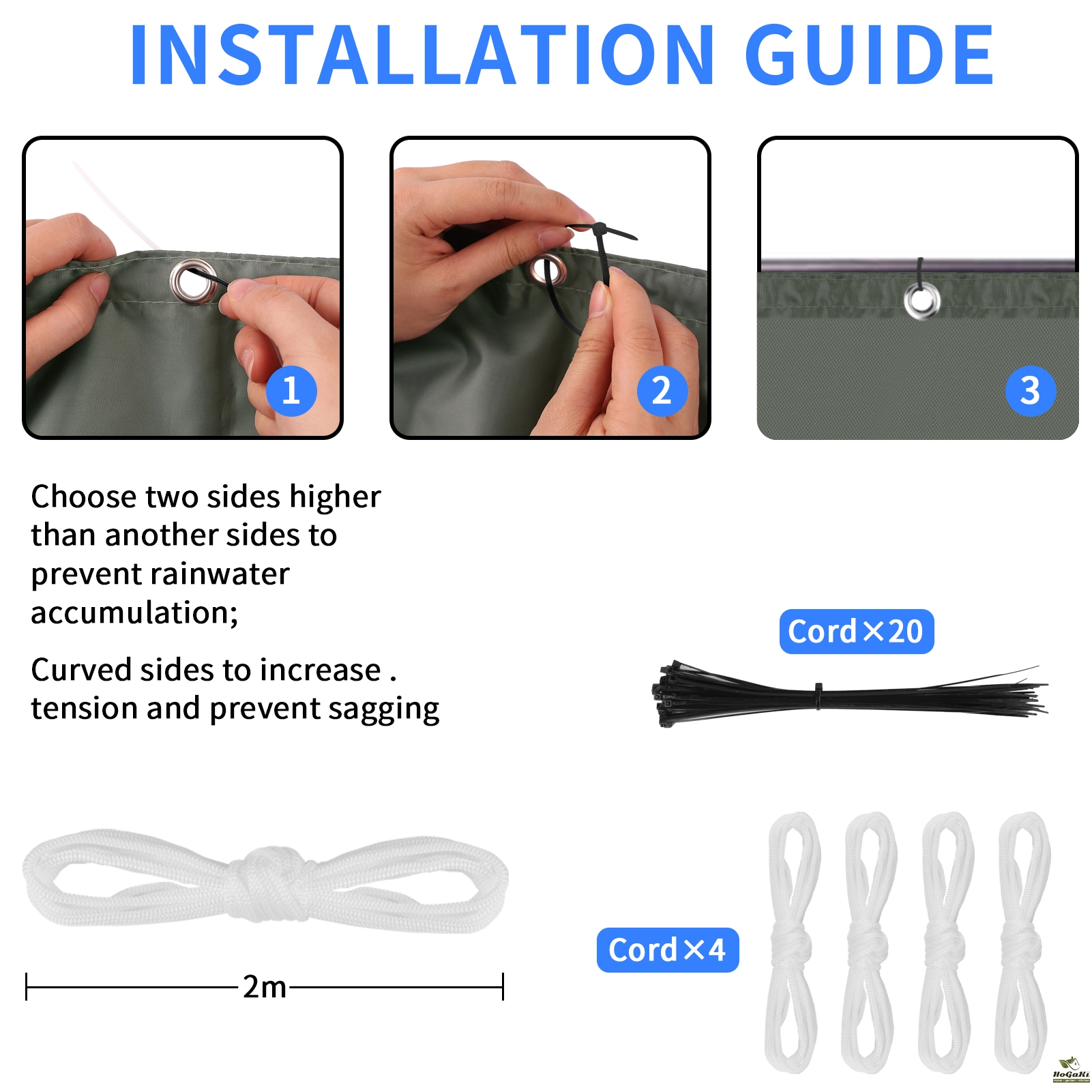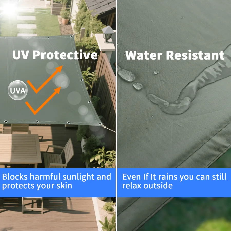 High quality: Shade sail made of 100% high quality and dense polyester fabric, can effectively achieve 95% UV protection and 90% shade rate. Can drastically reduce the temperature and create a cool, comfortable outdoor area. This outdoor shade sail is UV protected, waterproof, tear-resistant and can reach.
