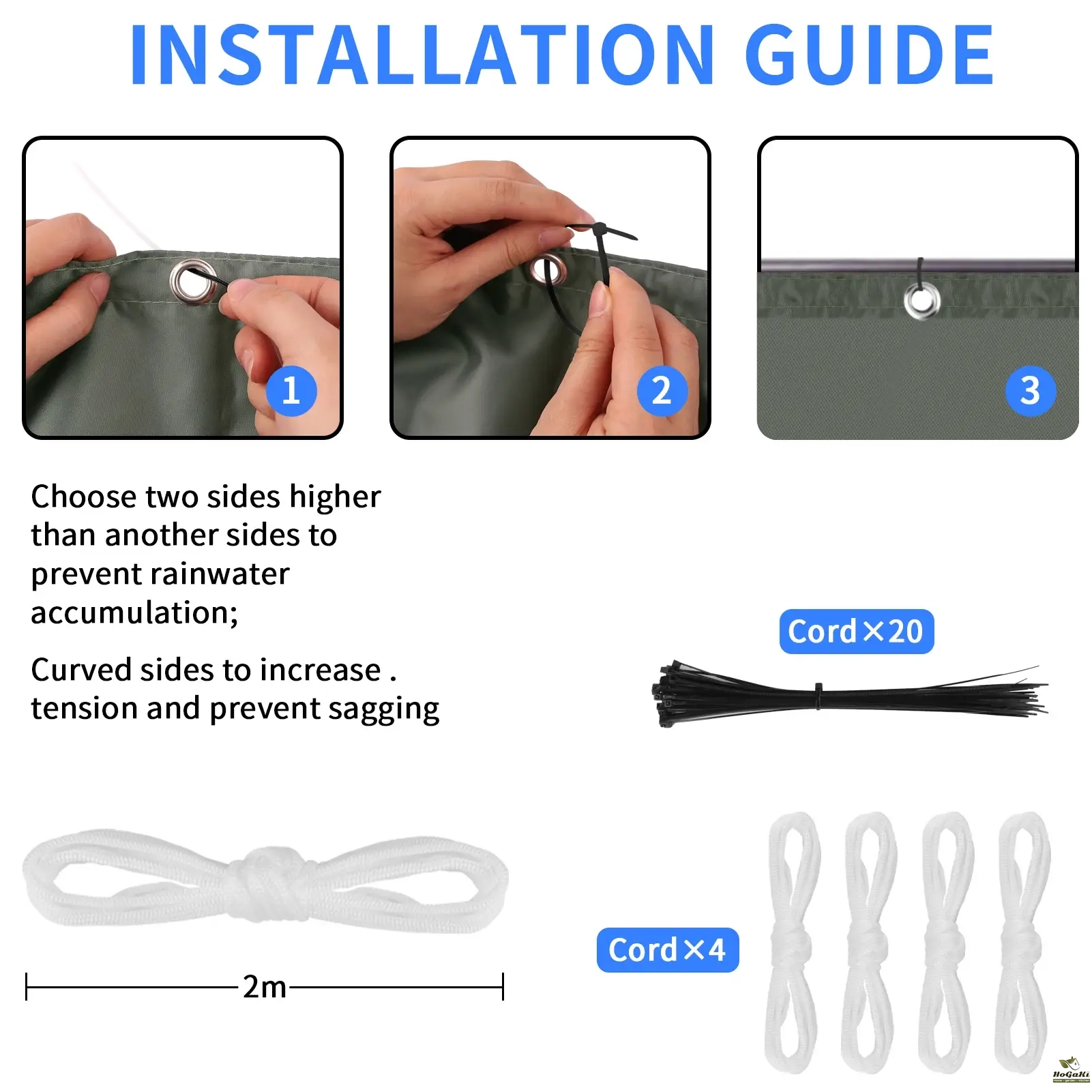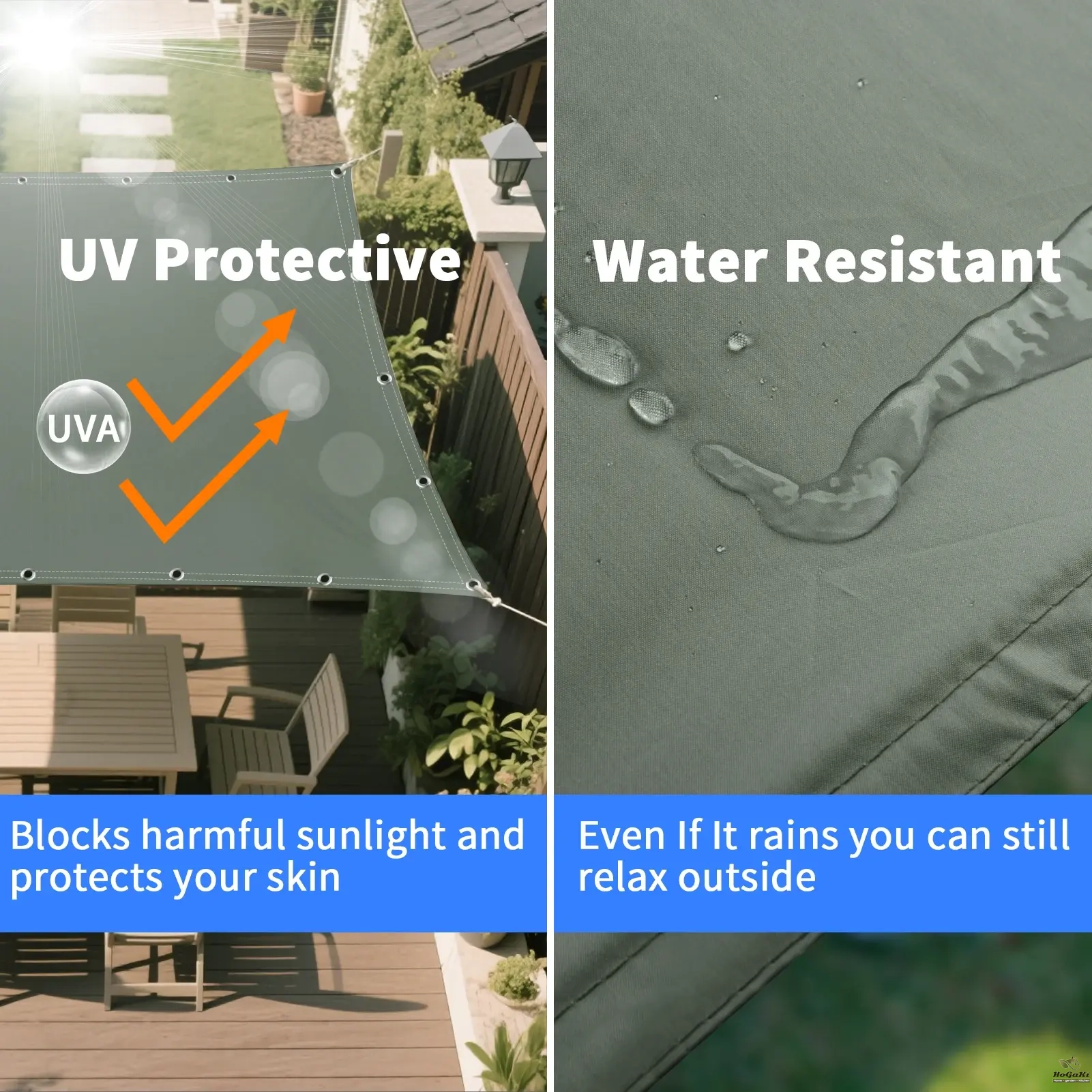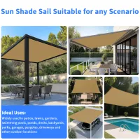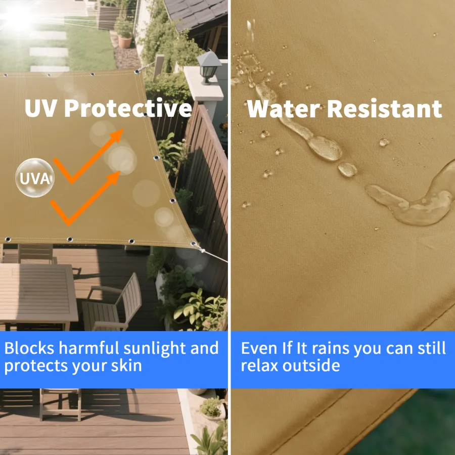 High quality: Shade sail made of 100% high quality and dense polyester fabric, can effectively achieve 95% UV protection and 90% shade rate. Can drastically reduce the temperature and create a cool, comfortable outdoor area. This outdoor shade sail is UV protected, waterproof, tear-resistant and can reach.