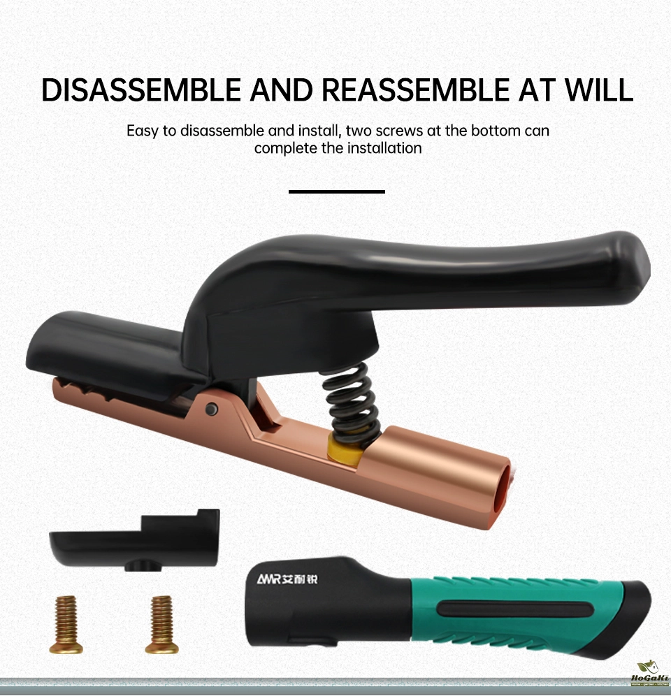 Loosen the handle screw, take out the copper head of the welding tongs, install the cable, and then put in the crimping piece, and fix the screw. Always maintain good contact between the cable and the copper head during use, so as not to affect normal use