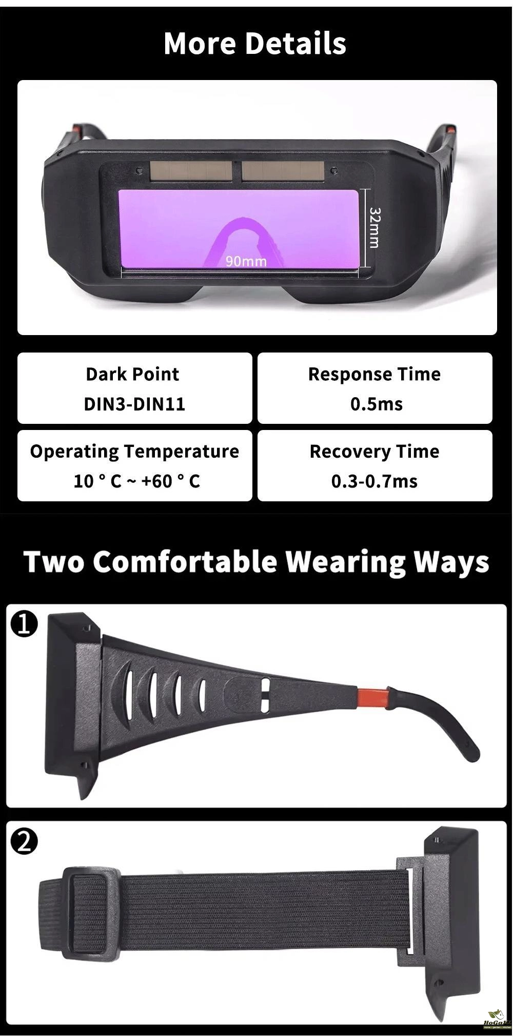 1. Intelligent sensitive filter, automatic dimming, 0.1 second instant darkening during welding, and 9-13 levels of shading effect, provide comprehensive protections.