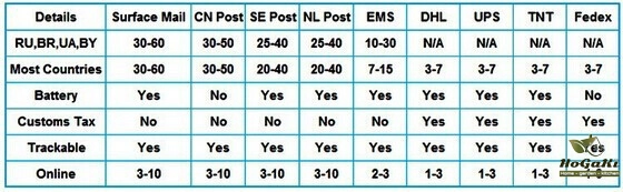 If you can't find the estimated delivery time on the product detail page, you can look at the following table for reference.