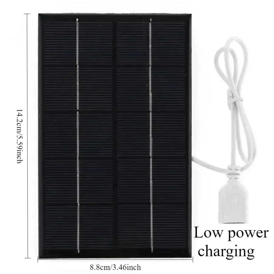 5-6W is the maximum power generation achieved by a one square meter solar panel under strong light experimental conditions (one square meter of monocrystalline silicon solar energy is 1000W). The size of this solar panel is 0.088x0.142 square meters. Under sufficient conditions, the power generation of this size is approximately 0-6W per hour, with a USB output of 0-5V and a current of 0-0.4A. It is not suitable for direct use on high-power mobile phones. Suitable for low-power products, solar panels need to be used in direct sunlight at 45 degrees Celsius. Please refer to the manual for details. The specific charging capacity may vary depending on the region and weather. Please refer to the actual situation for details