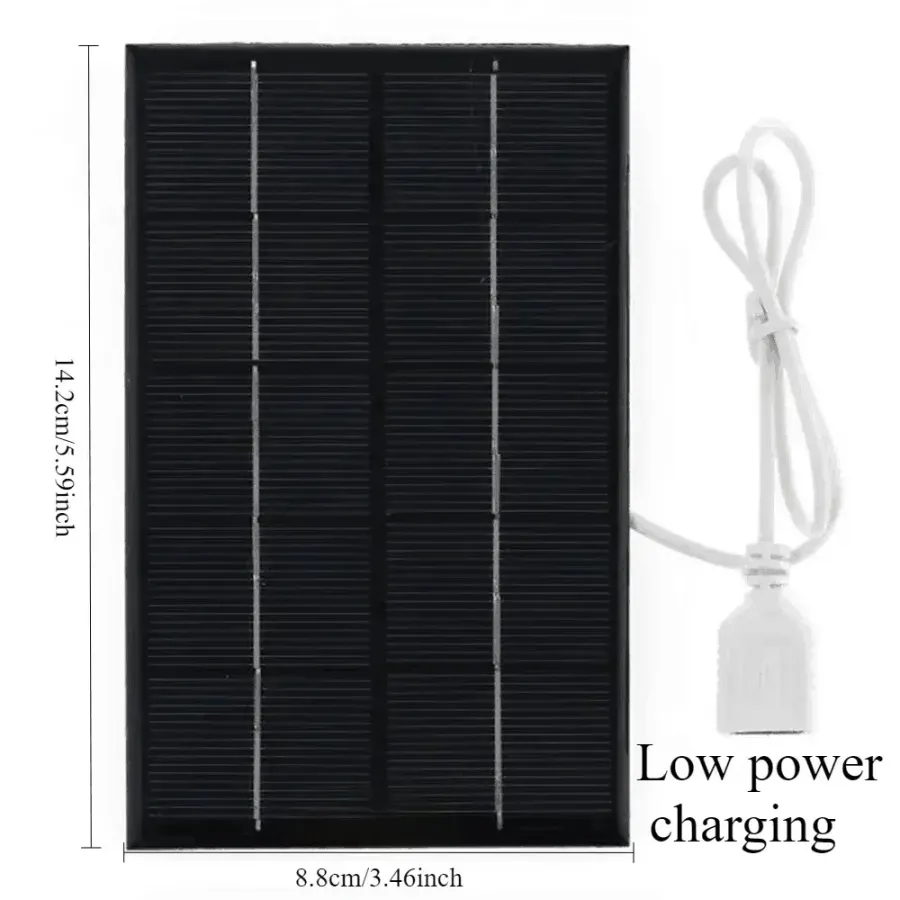 6W is the maximum power generation achieved by a one square meter solar panel under strong light experimental conditions (one square meter of monocrystalline silicon solar energy is 1000W). The size of this solar panel is 0.088x0.142 square meters. Under sufficient conditions, the power generation of this size is approximately 0-6W per hour, with a USB output of 0-5V and a current of 0-0.4A. It is not suitable for direct use on high-power mobile phones. Suitable for low-power products, solar panels need to be used in direct sunlight at 45 degrees Celsius. Please refer to the manual for details. The specific charging capacity may vary depending on the region and weather. Please refer to the actual situation for details
