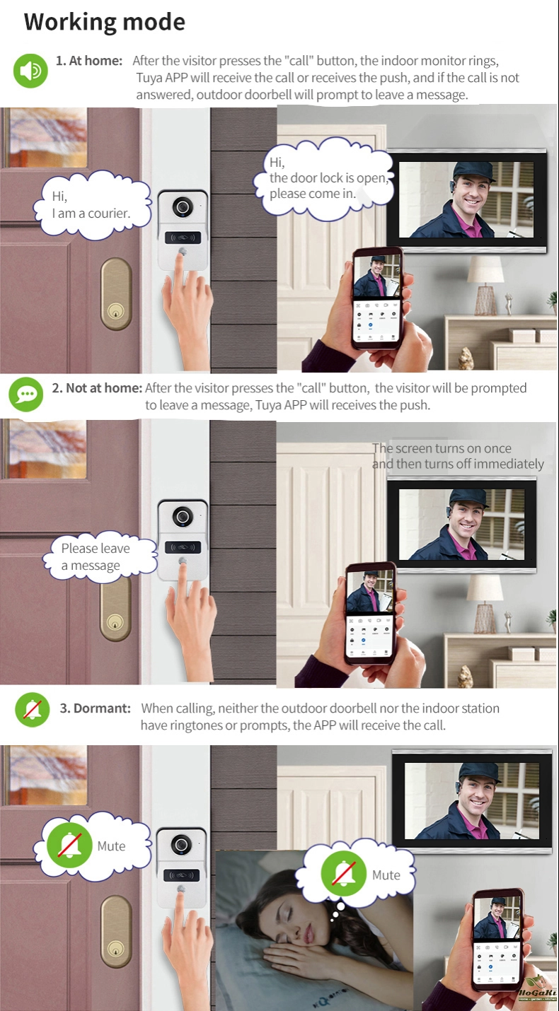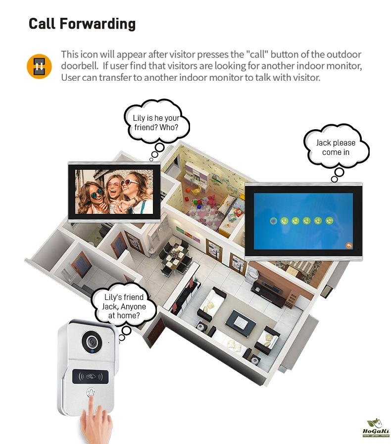 Dual-Way Communication between indoor monitor and outdoor camera; Call Transfer among monitors. You don't always go downstairs open the door after install the multiple intercom.