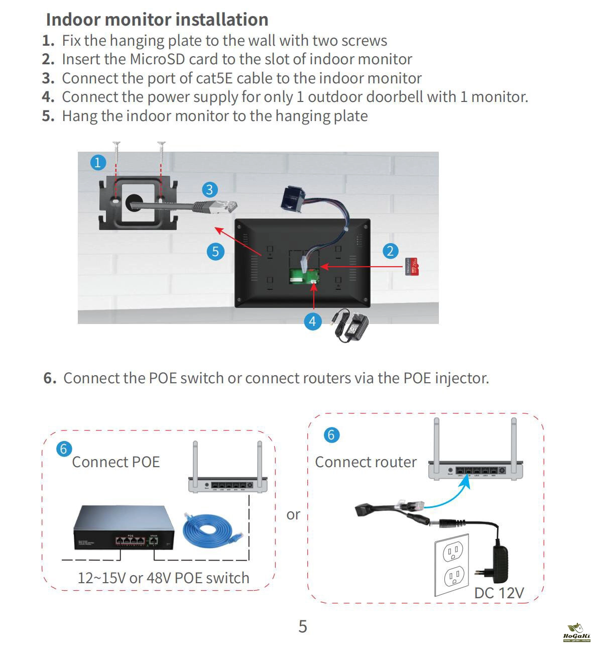 Multiple Intercom Up to 2 doorbells can be connected with 6 indoor monitors