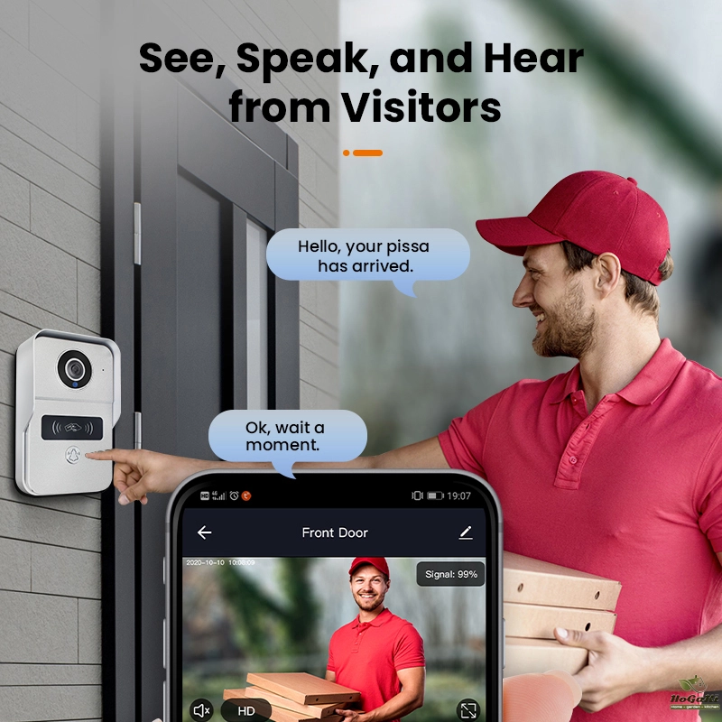 If you forgot your key when closed your door, use your phone to unlock. See, hear and speak to people(like courier) as if you are home, never miss any visitor.It is convenient for elder or people with reduced mobility to open the door.