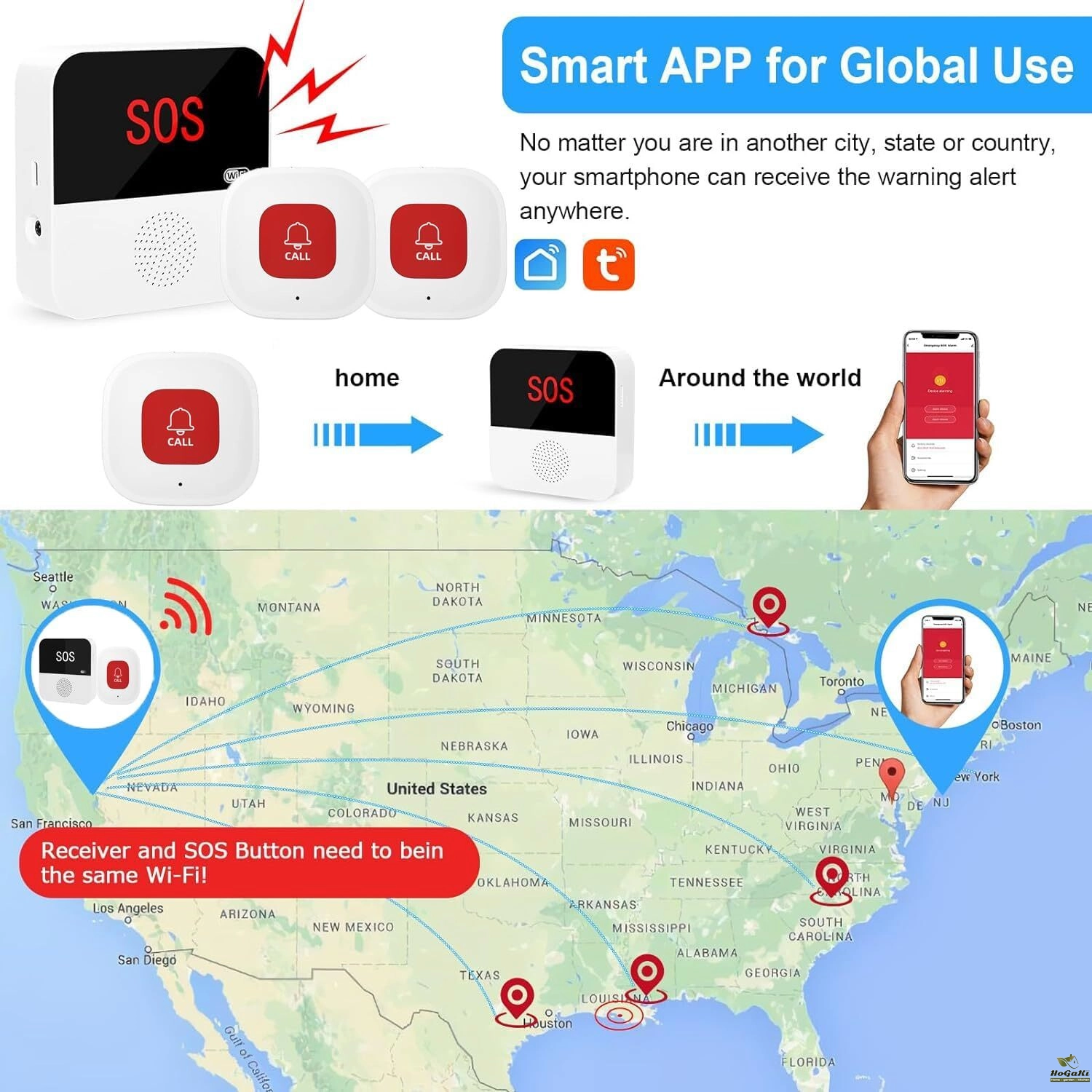 . [Wi-Fi Connection & Smart APP Control] This caregiver pager connects with cell phone through Wi-Fi to realize phone APP remote operation(First connection needs to ensure that the cell phone - pager - call button connection is made in the same Wi-Fi network environment), no matter how far away it is, the phone can clearly receive the alarm signal after the SOS call button is triggered. Remind caregivers to take care of the elderly at home at any time.