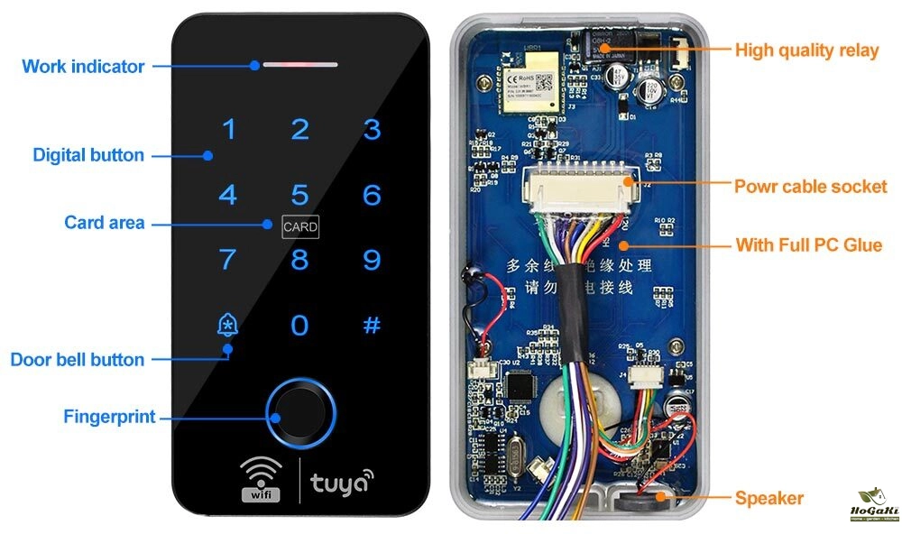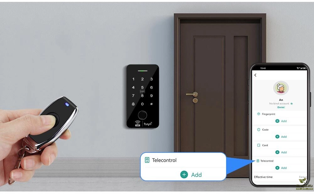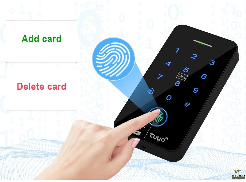ldentification method: Fingerprint, RFID Card, Password, Tuya APP.