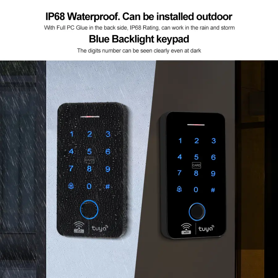 Wifi Tuya Fingerprint Access Controller Outdoor Waterproof Standalone RFID Keypad System 125KHz 13.56MHz WG26 Smart APP Unlock