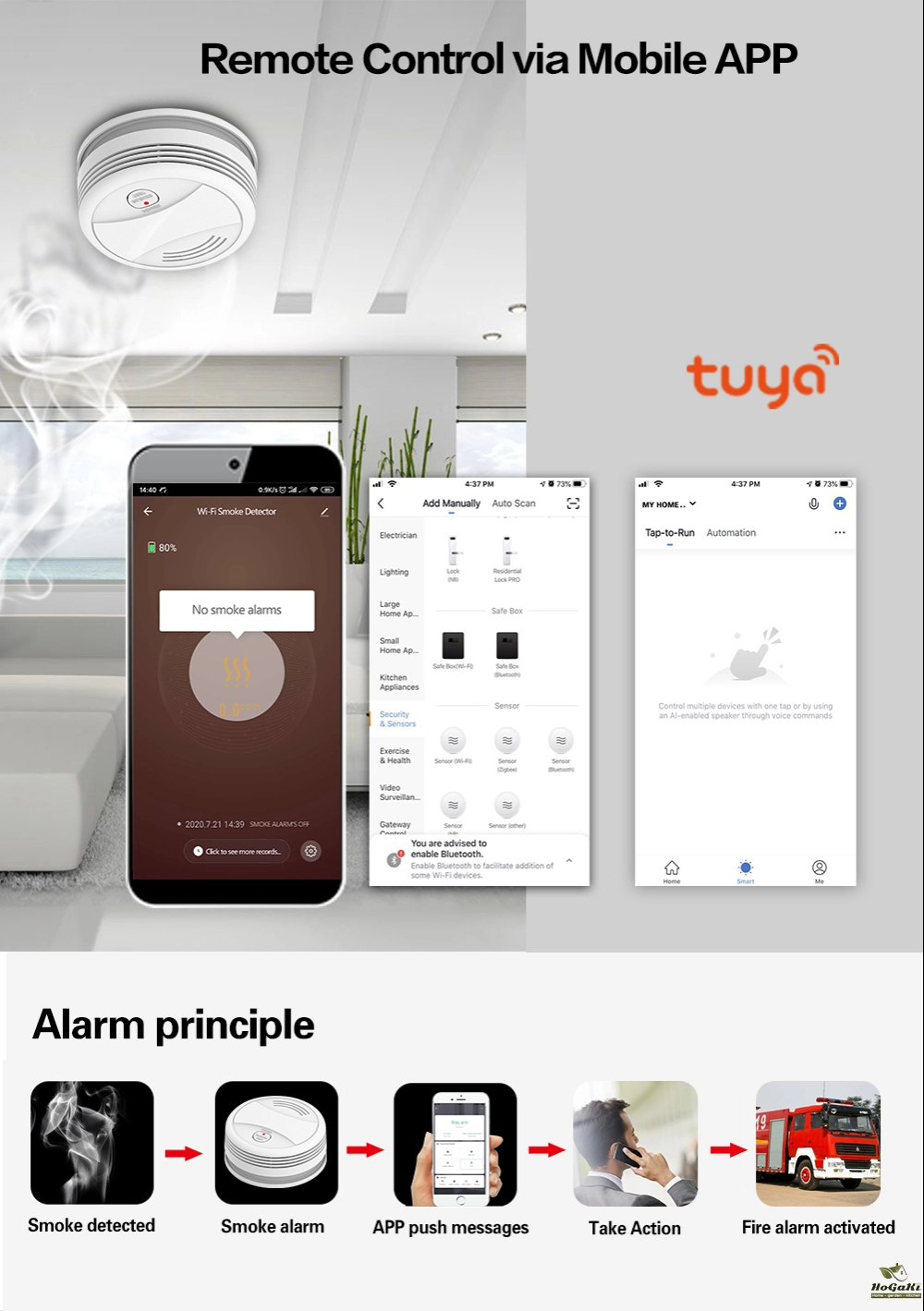 Install 'Tuya Smart' APP on your smartphone the first time you use the detector.