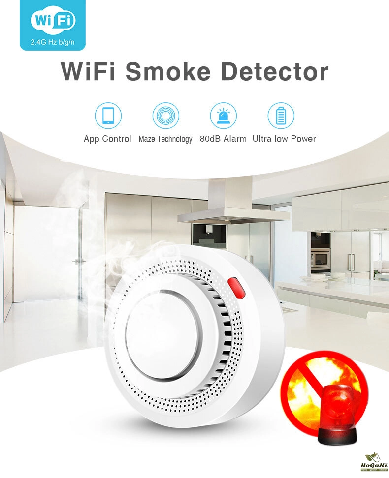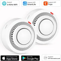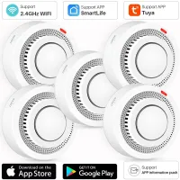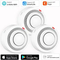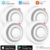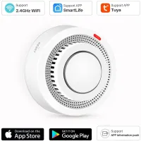 Tuya WIFI Smoke Detector Fire Protection Alarm Sensor Independent Wireless Battery Operated Smart Life Push Alert Home Security(no battery)