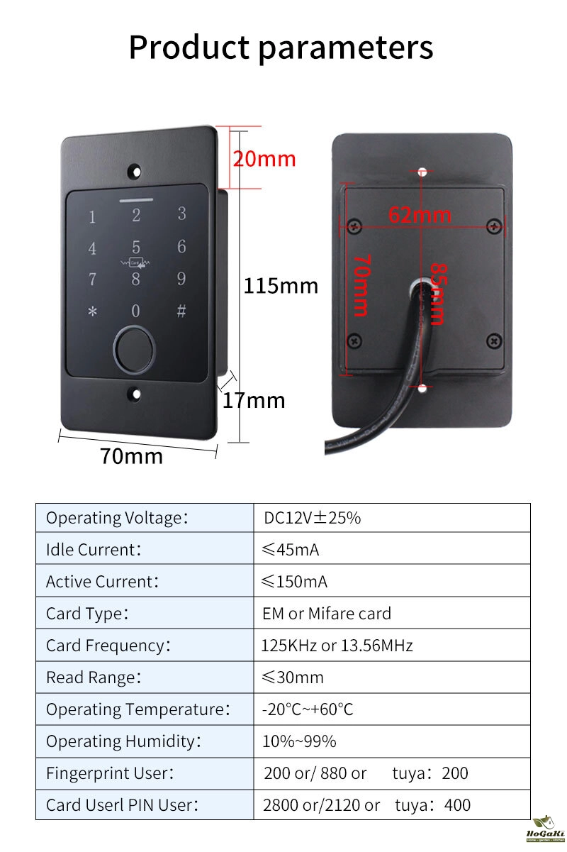 WIFI Tuya Waterproof Backlight RFID Door Access Control Keyboard Fingerprint Card Reader Embedded Metal Keypad Access Controller