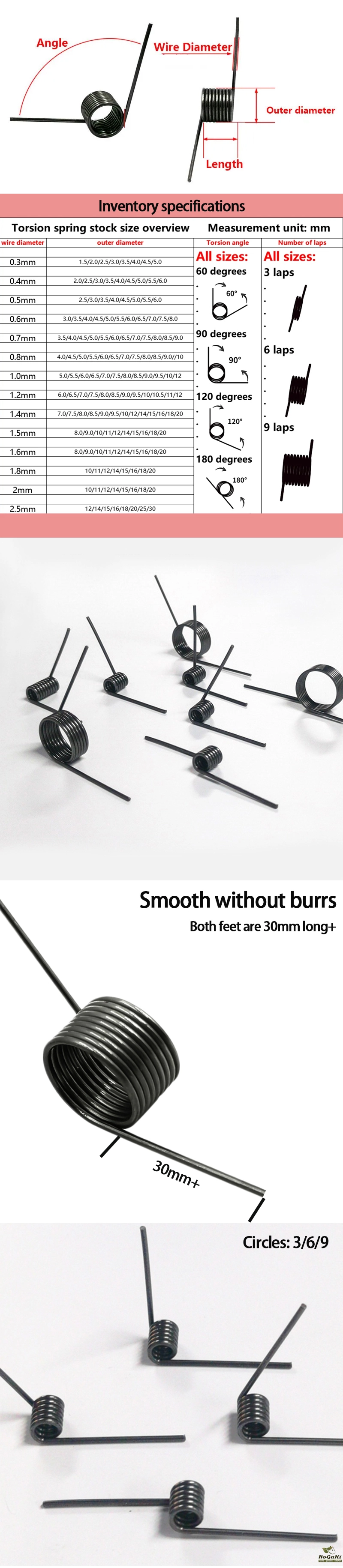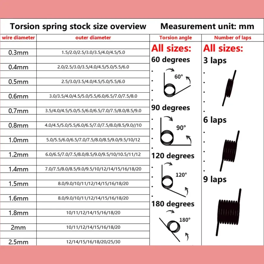 Wire Diameter 1.0mm 65Mn Steel V-Shaped Helical Torsion Spring Angle 60 90 120 180 Degrees Custom Metal Springs 10 Pieces