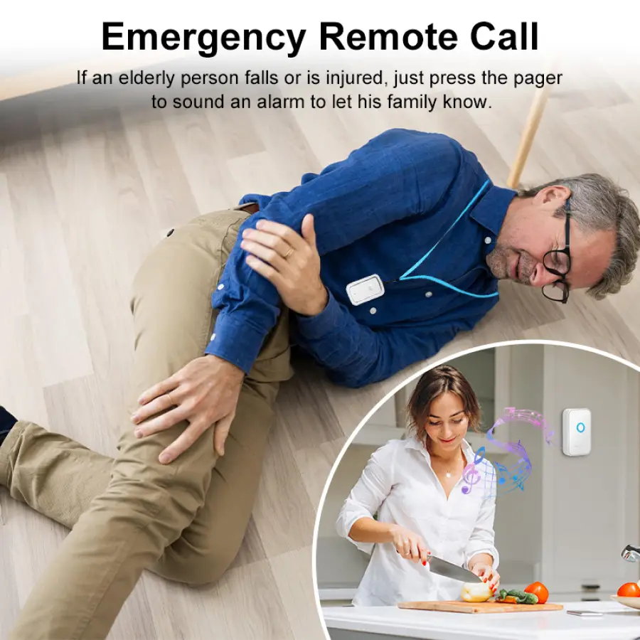 If an elderly person falls or is injured, just press the pager to sound an alarm to let his family know.