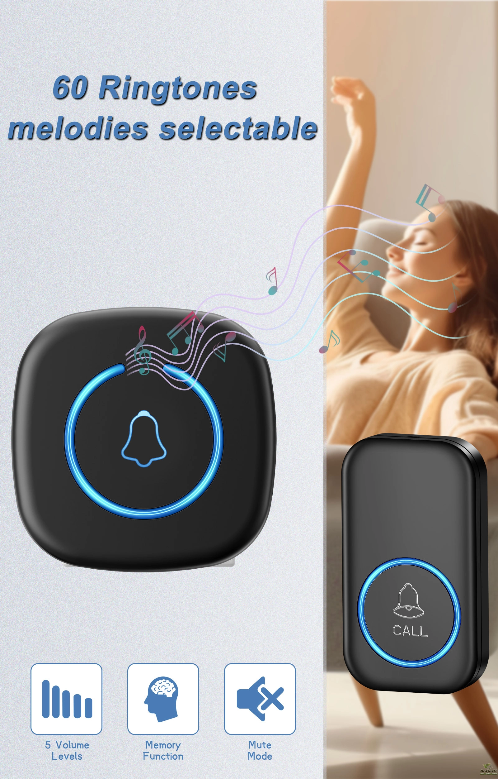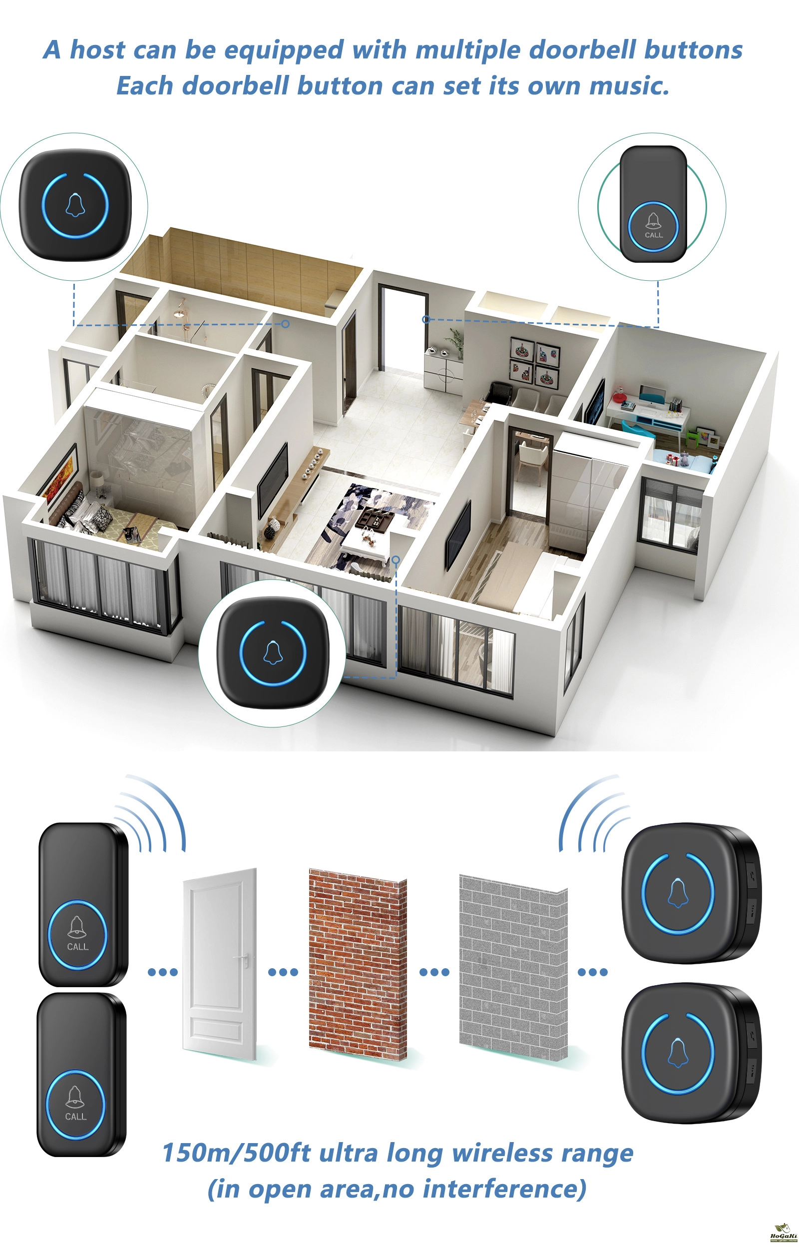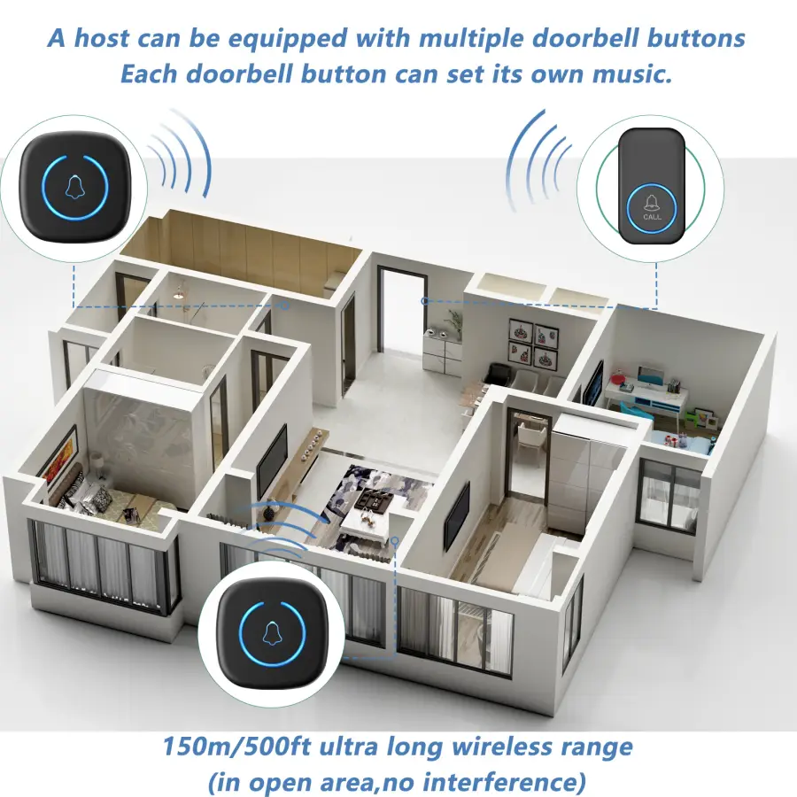 Wireless Doorbell Intelligent Welcome Door Bell 300M/984 FT Remote 60 Songs Melodies Home Smart Doorbell US EU Plug Optional