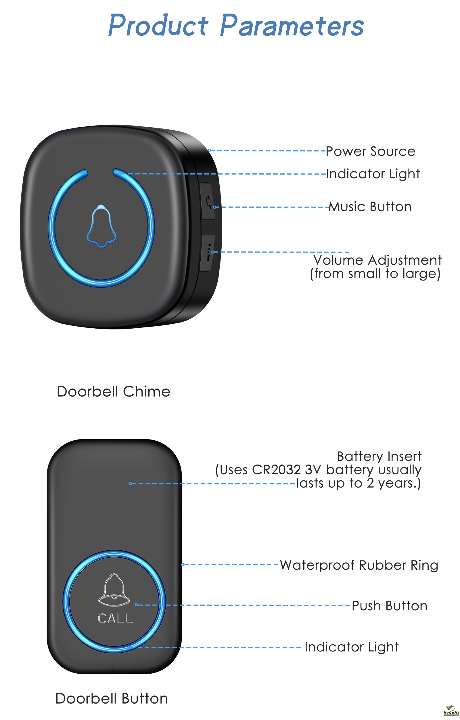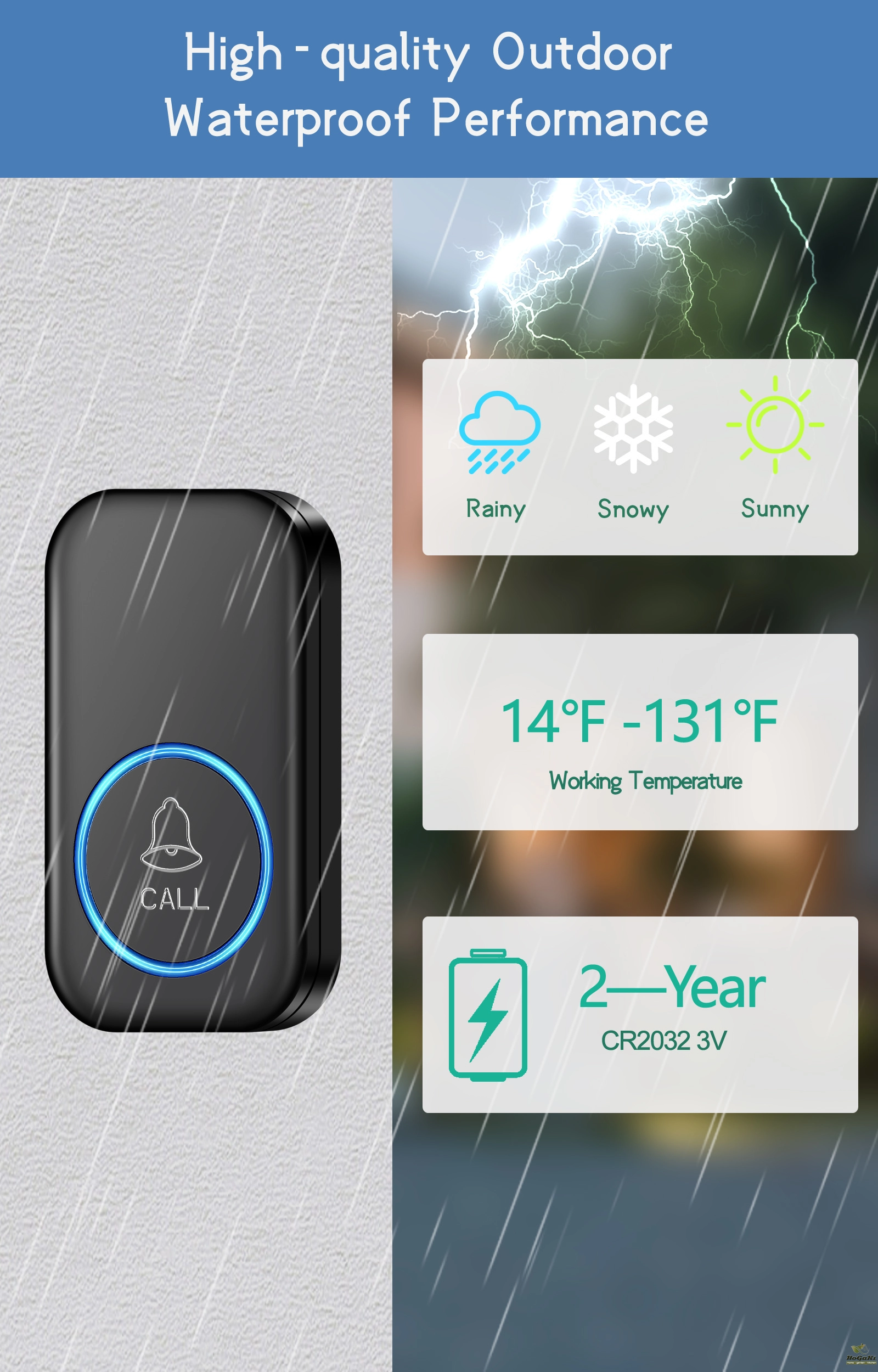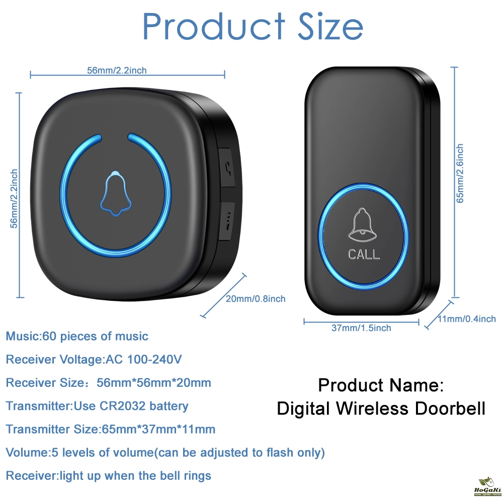 Wireless Doorbell Intelligent Welcome Door Bell 300M/984 FT Remote 60 Songs Melodies Home Smart Doorbell US EU Plug Optional