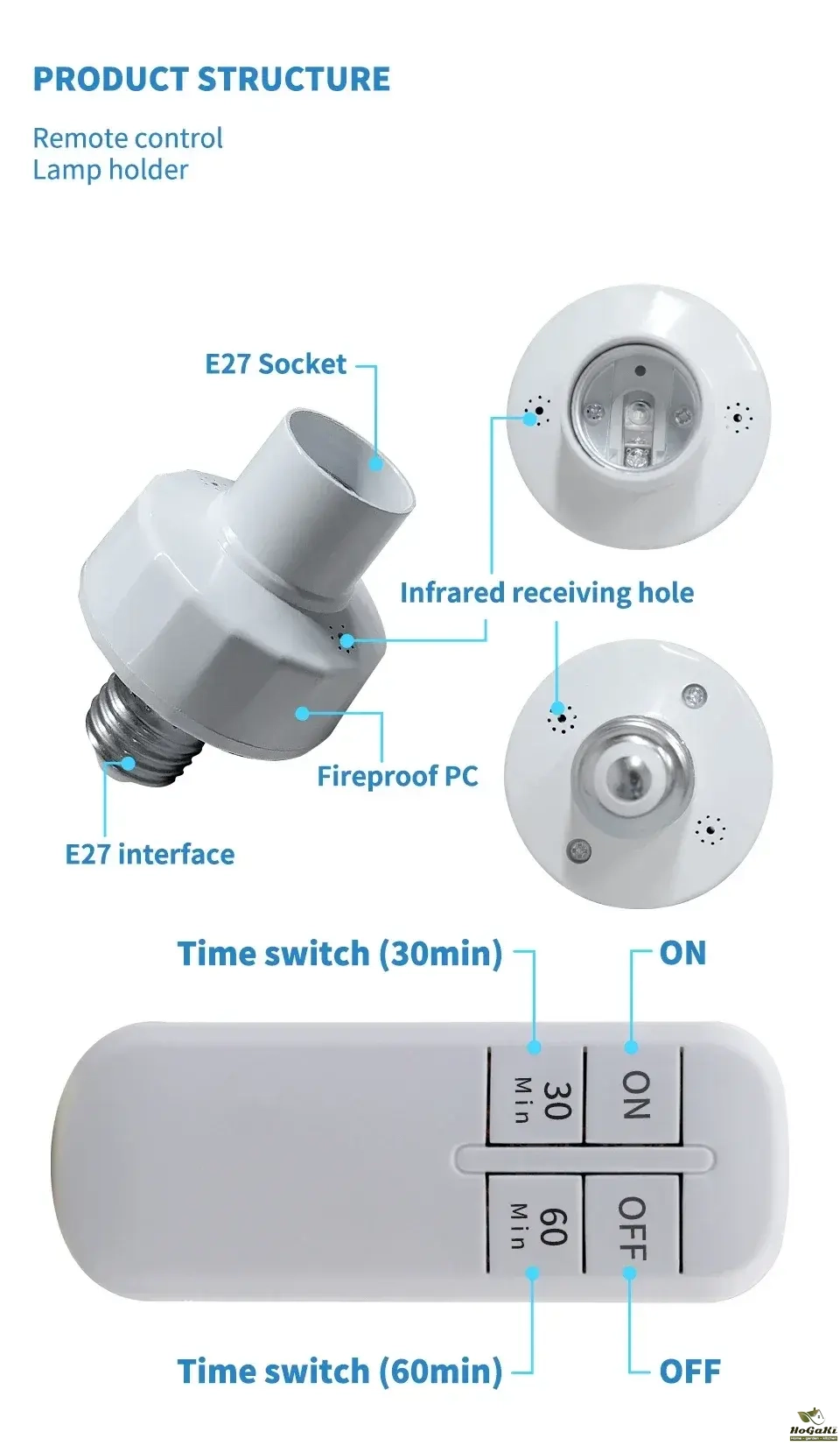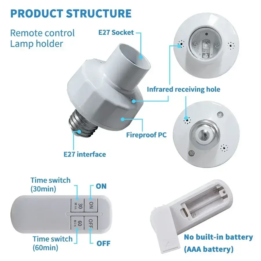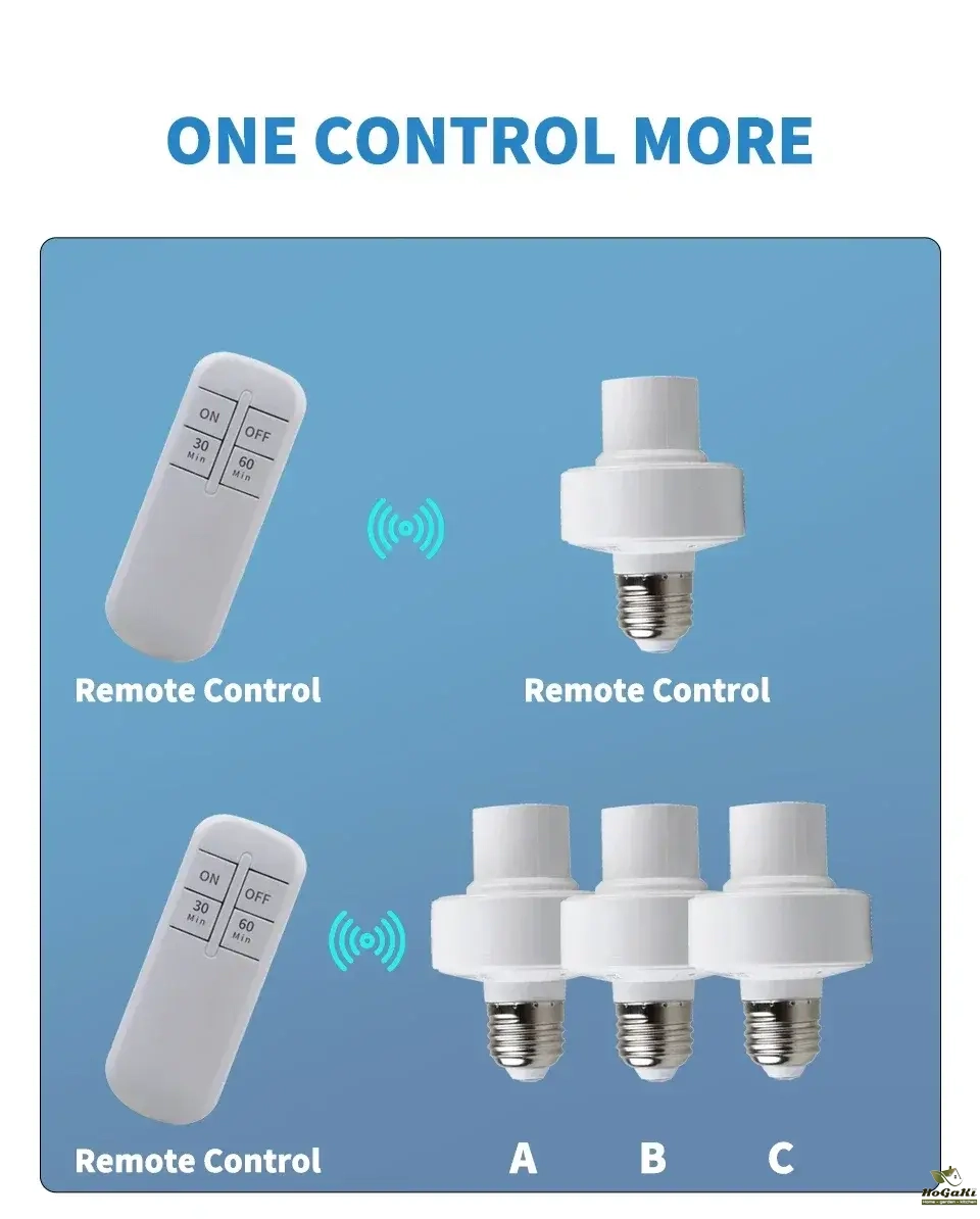 Wireless remote control E27 bulb base light socket lamp holder smart ON/OFF switch kits for LED bulbs.