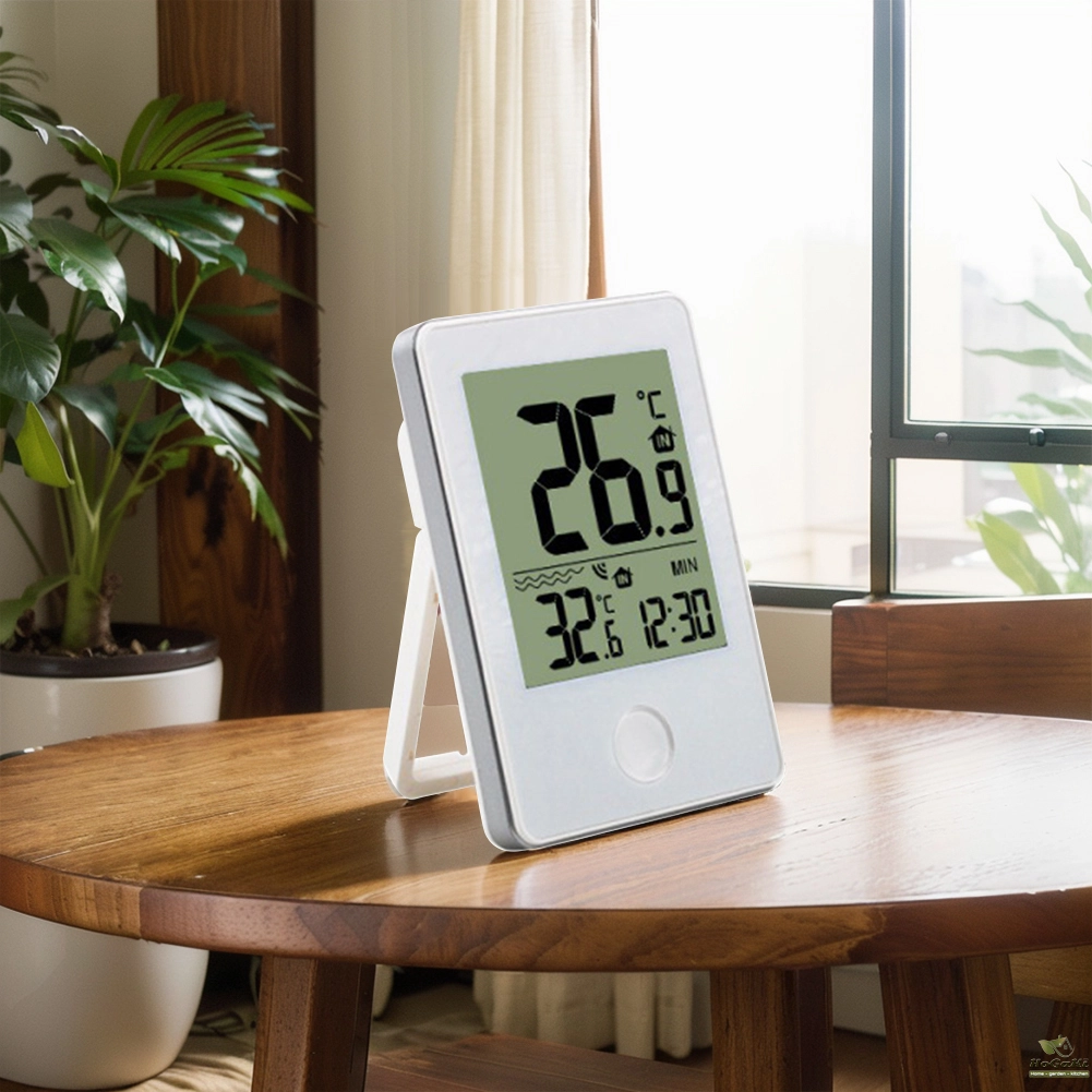 3. User-Friendly Display: Featuring a clear LCD screen, this swimming pool thermometer displays time in 12/24-hour formats and allows you to select your preferred temperature unit (C/F) with the "C/F" button. It also records the highest and lowest temperature readings.