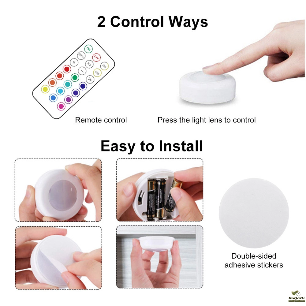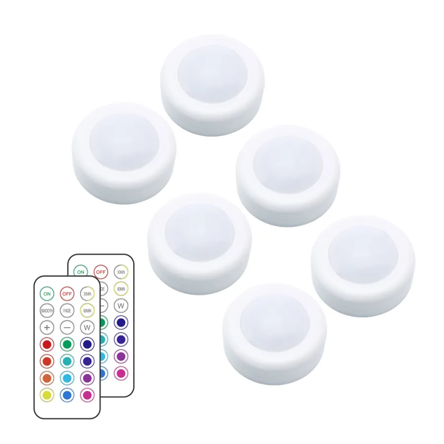 RGB Color Under Cabinet Lights Wireless Battery LED Lights Remote Control Dimmable Wardrobe Night Lamp For Bedroom Kitchen