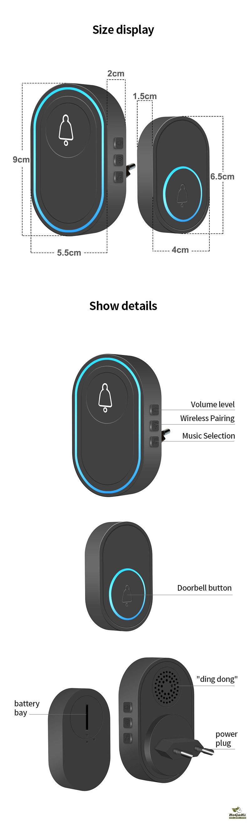 Wireless Music Doorbell Elderly Emergency Pager 433MHz Household Long Distance Intercom Detector Intelligent Anti-theft Alarm