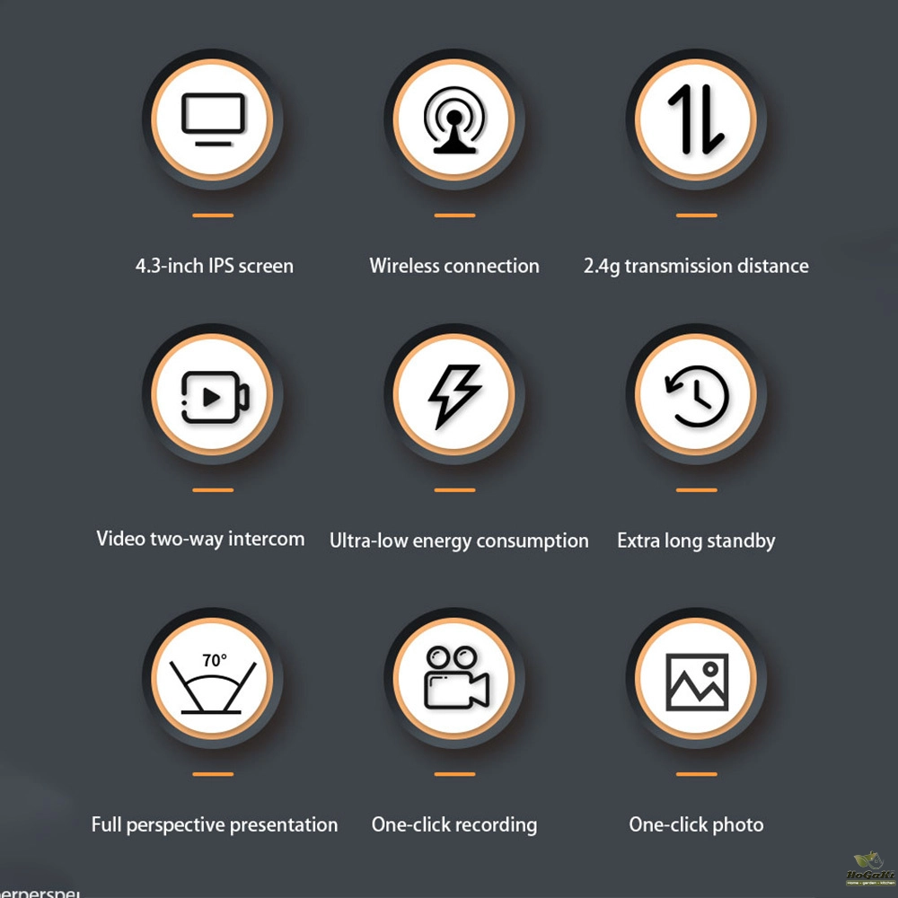1. Wireless visual intercom doorbell: our 4.3-inch IPS screen 2.4G wireless visual intercom doorbell provides a clear and wide view, allowing you to see who's at the door without opening it. It's a smart doorbell that offers high-definition video monitoring for your home.