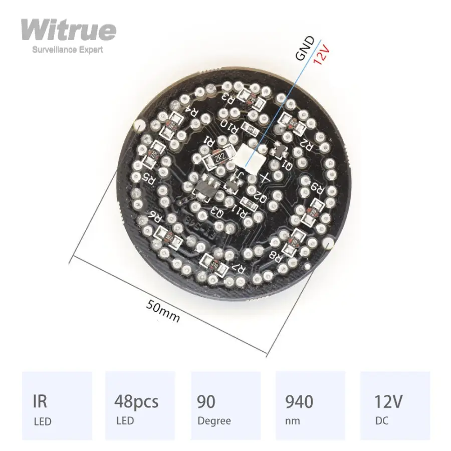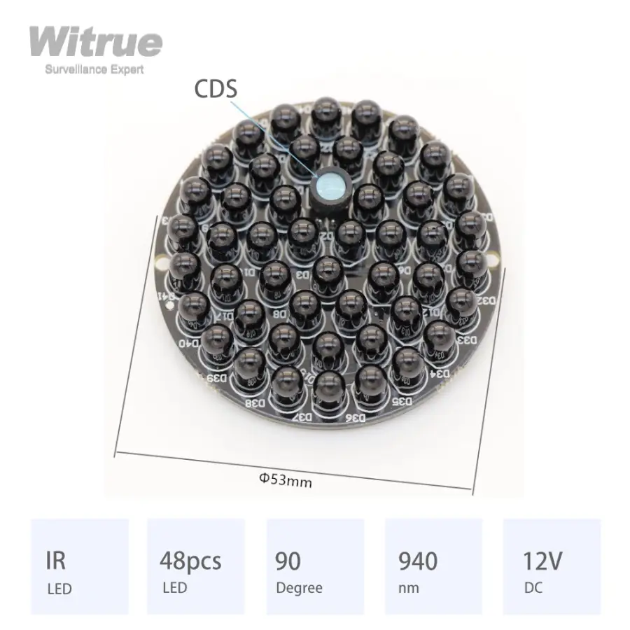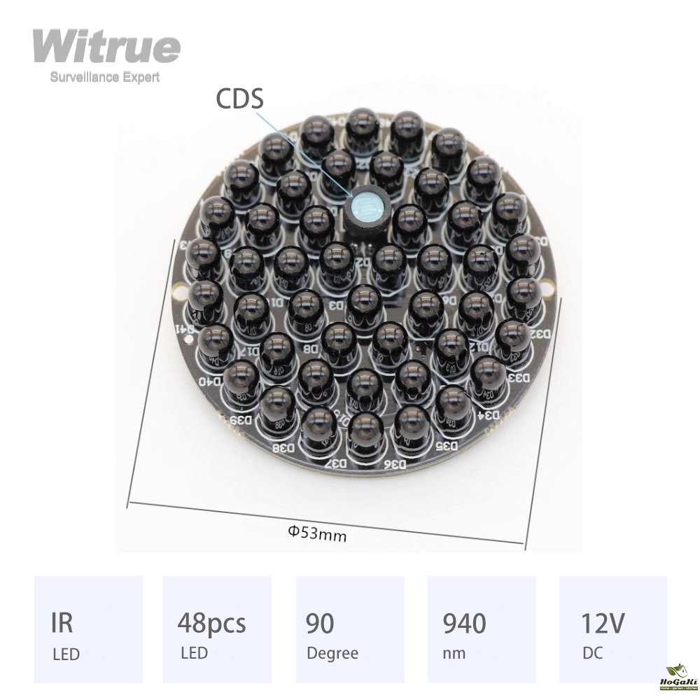 Witrue Infrared IR Board 940nm Invisible Light 48pcs LEDs 90 Degree for Surveillance Camera CCTV Accessories