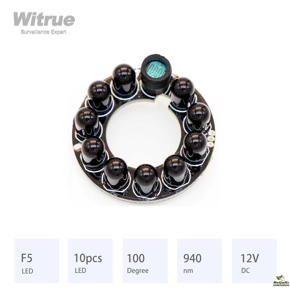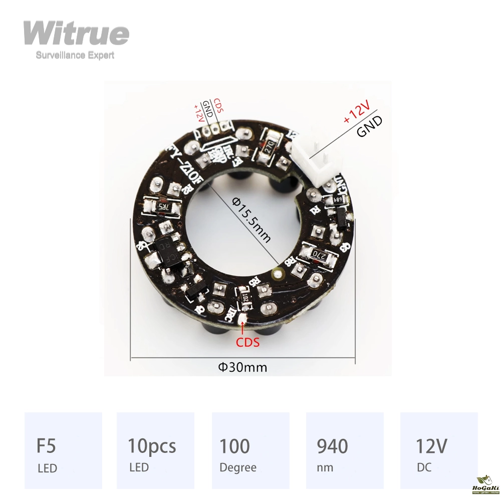 Witrue IR LED Board 10 Grain 940nm 100 Degree Diameter 30MM DC 12V 0.09A CCTV Accessories for 2.8MM 3.6MM 4MM Lens