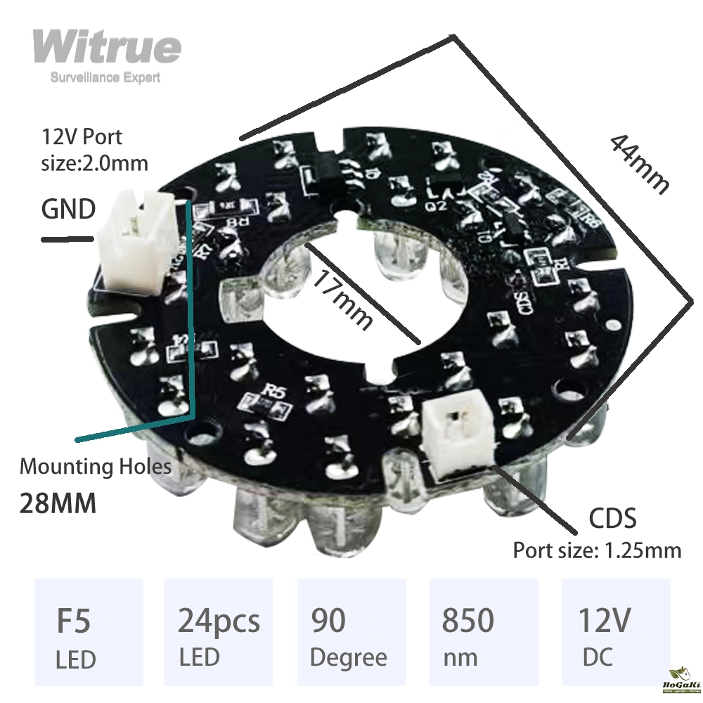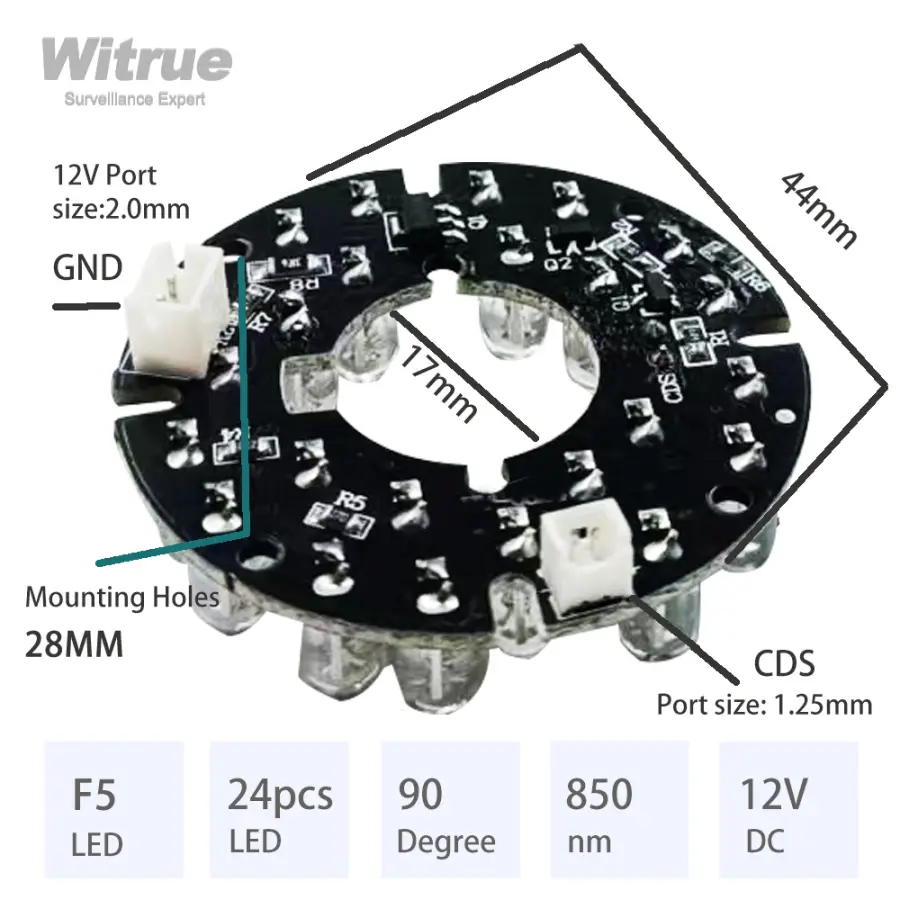 Witrue IR LED Board 24 Grain 850nm 90 Degree Diameter 44MM CCTV Accessoriesfor Surveillance Security CCTV Cameras