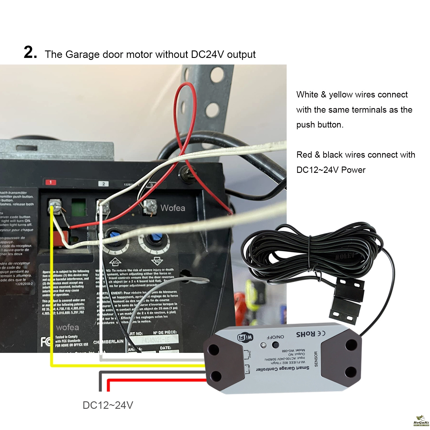 Work with power DC12-24V , You can connect with Garage door motor DC24V output terminals