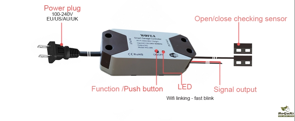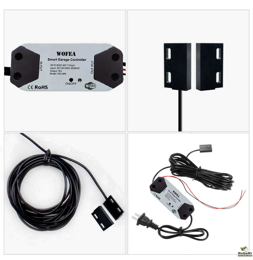 This Wofea Garage smart controller use to work with Garage opener and make it can be controlled by the phone , easy install and without any changed in your Garage , Just one to make the garage smart, and you will have this funtions to open and close the garage door by phone ,by schedules ,by voice (work with alexa & google home) , Query status, query open/close recordsetc.