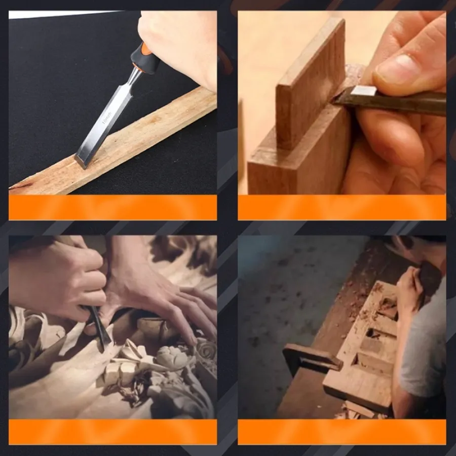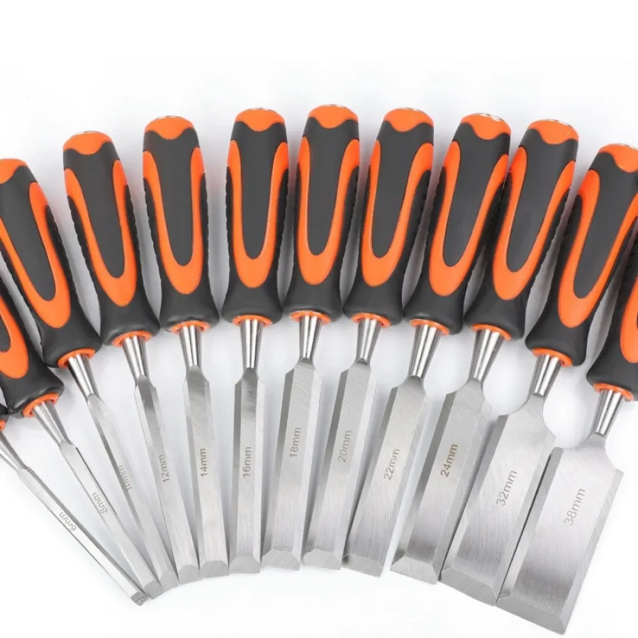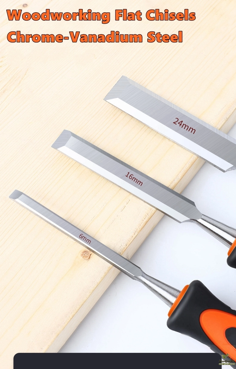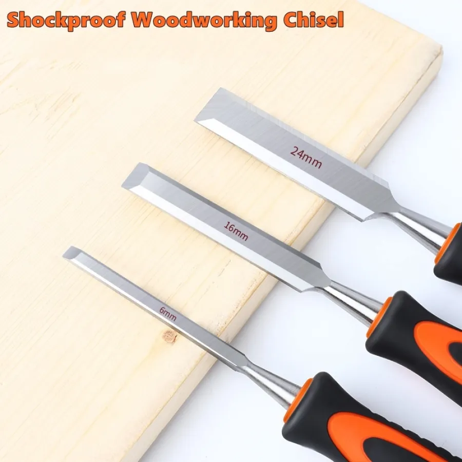 Wood Chisels Sharp Chrome-Vanadium Steel Woodworking Plane Carving Knife Anti-Slip TPR Coated Handle Ergonomic Wood Carving Tool