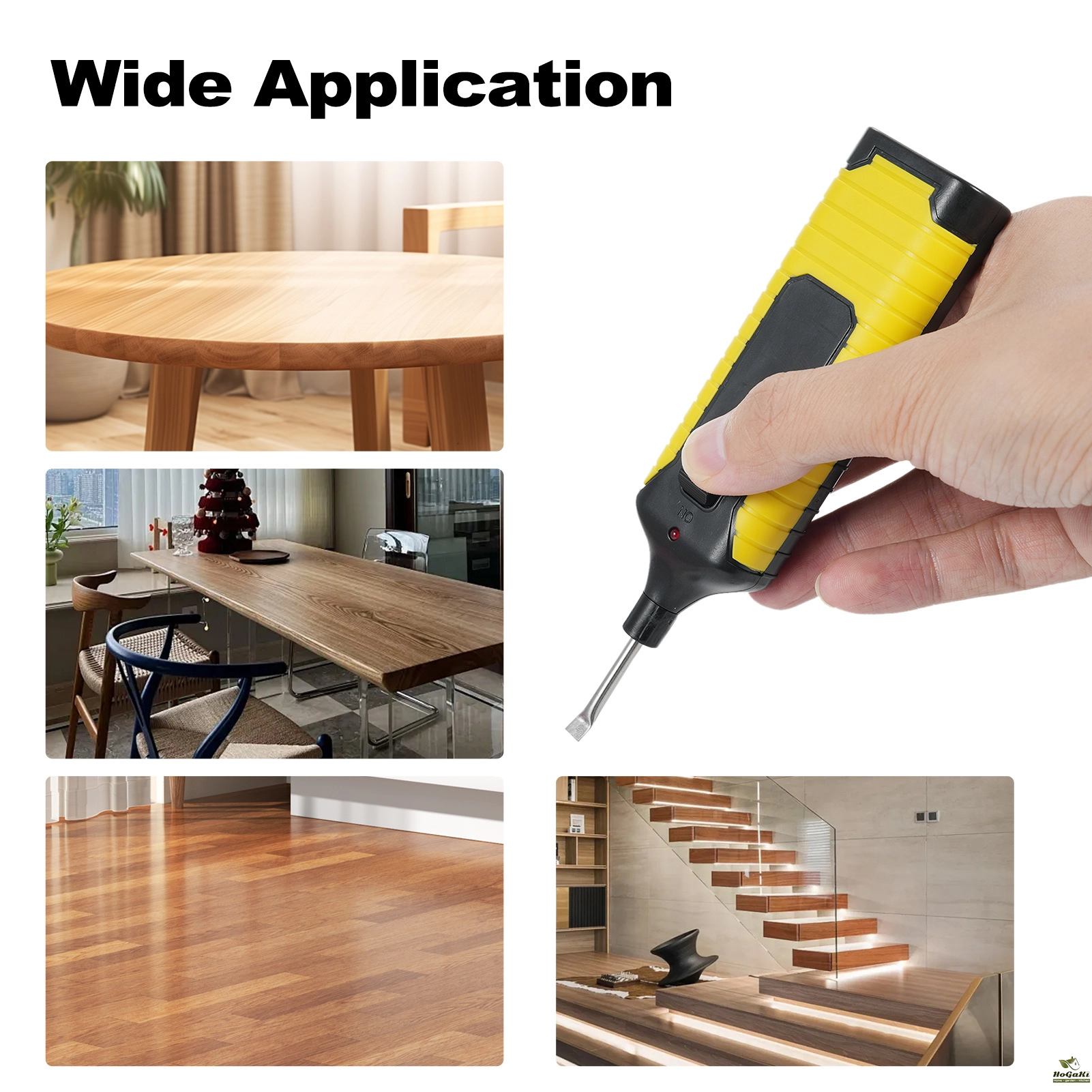 This tool set is essential floor repairing tool set for you to use in your home. With it, you can repairing your floor by yourself. The process is very simple and convenient. You don't need to worry about the aging or damage of the floor anymore. Come and try it, it will not let you down.