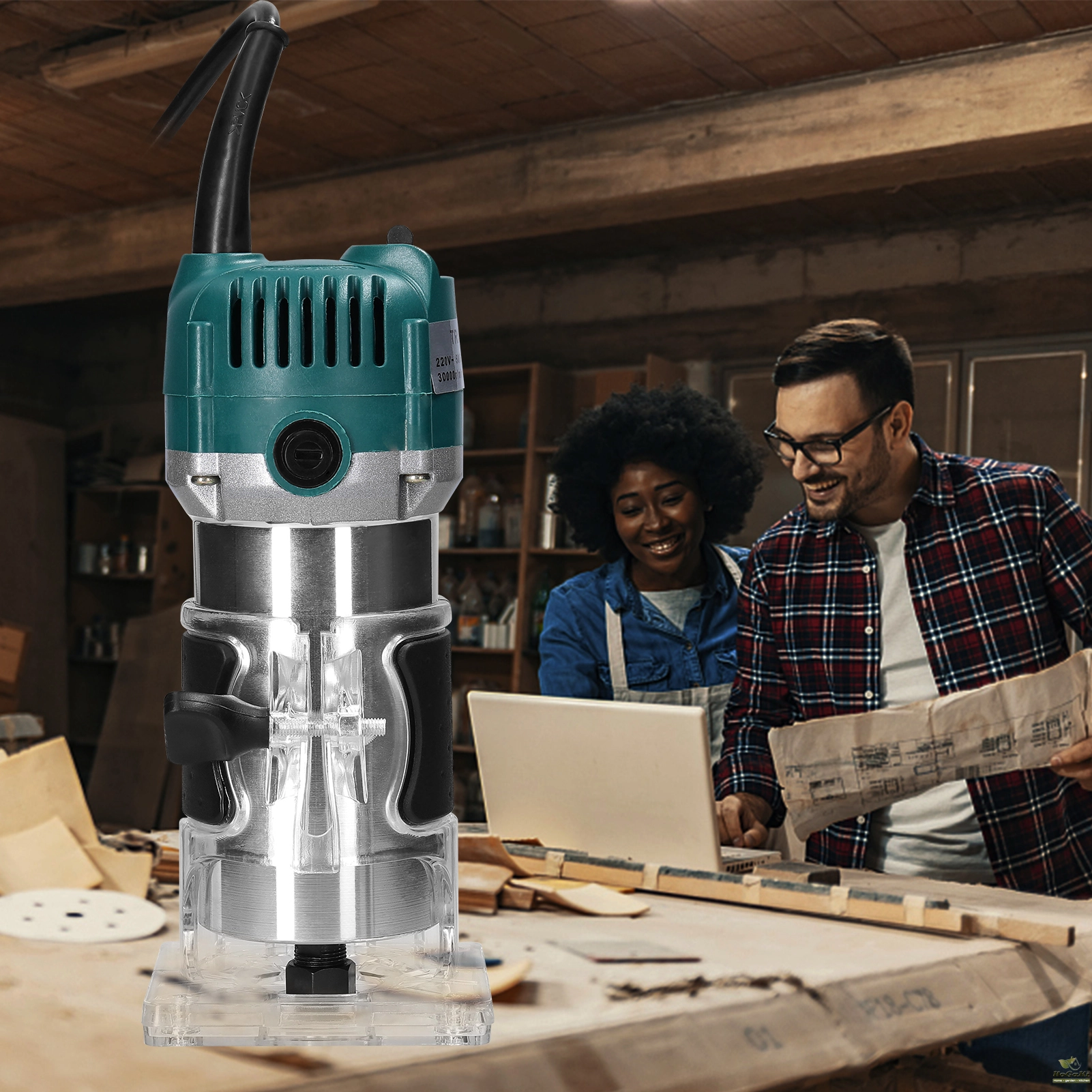 This electric trimmer can be used for wooden processing, cabinet processing, handicraft production and DIY. Easy for wood trimming, grooving and drilling. With transparent base, processing accuracy can be easily recognized. With tightness adjustment knob to precisely fix the tightness of the transparent cover. Comes with trim guide base and straight trim guide ruler, it can be more effective to assist in cutting straight lines, chamfers or grooving works. Equipped with 15 different types of milling cutters, it can carry out different kinds of trimming and shaping operations on wood or other materials to meet different processing needs and improve work efficiency. Suitable for wooden processing, cabinet processing, handicraft production, etc.