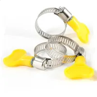 5 pcs 8-44mm Adjustable Yellow Plastic Handle Hand Twist Hose Clamps Worm Driving Stainless steel Pipe Clips For Tube