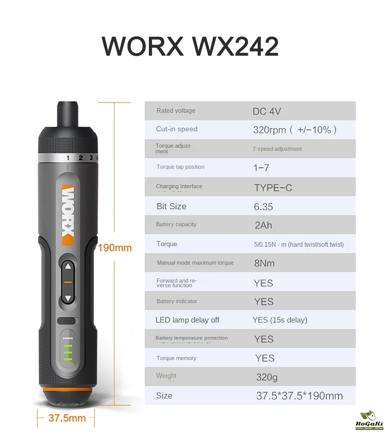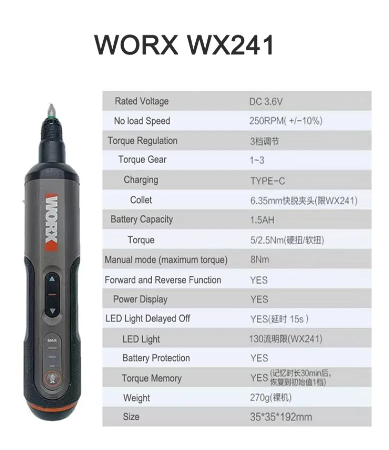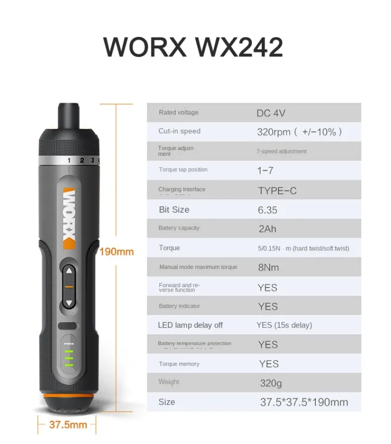 Worx 4V Mini Electrical Screwdriver Set WX242 Smart Cordless Electric Screwdrivers USB Rechargeable Handle 30 Bit Set Drill Tool