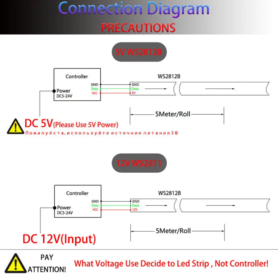 1.Supply voltage of this controller is DC5-24V,please never connect to others or AC220V.