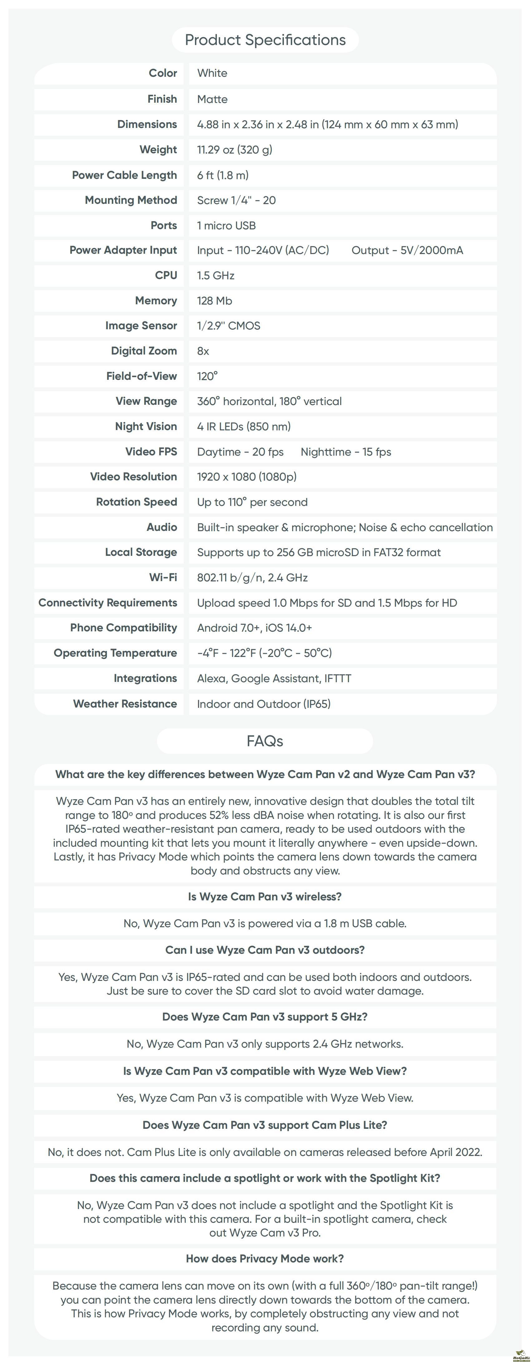 Smooth, quiet operation: Engineered for speed, precision, and quiet operation. Wyze Cam Pan v3 does its job smoothly and discreetly, without noisy gearworks.