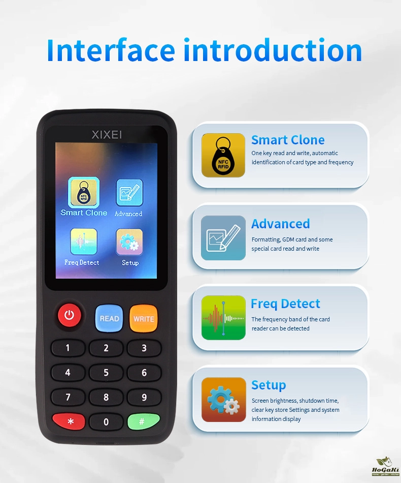 • Clone NFC Decoder :The New X7 RFID Smart Chip Card Reader comes with a clone NFC decoder, allowing you to easily create and duplicate cards and badges.
