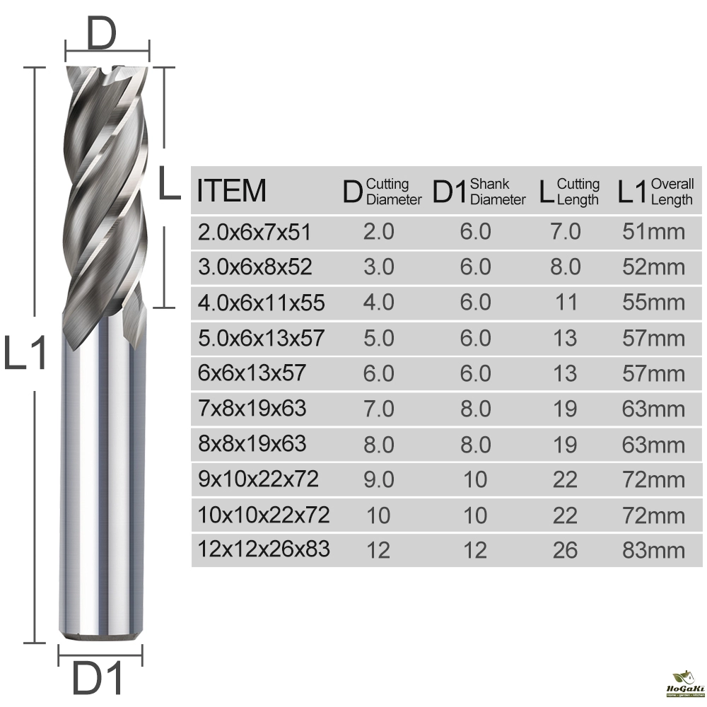 2-12mm Range :The 2-12mm range of sizes gives you the flexibility to mill a wide range of materials and sizes.