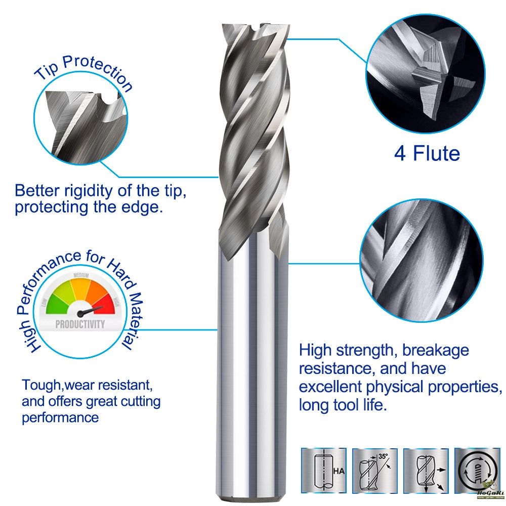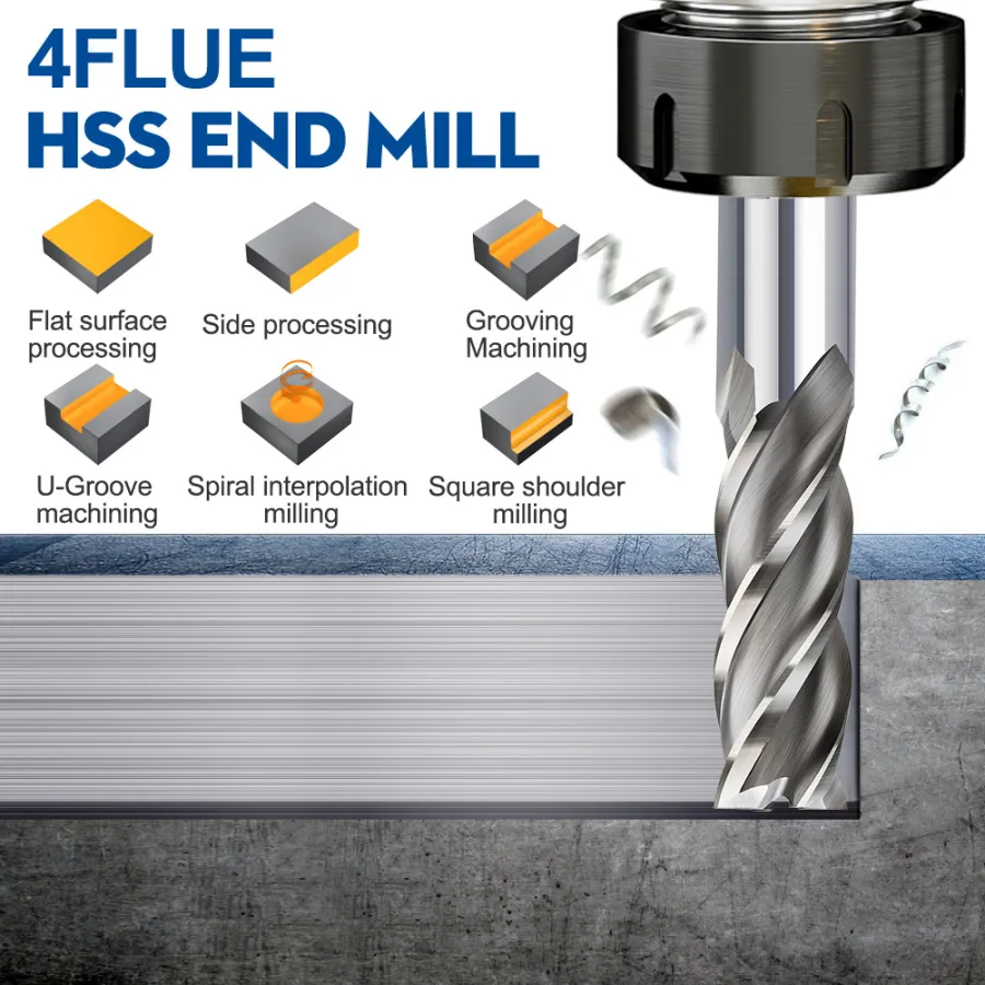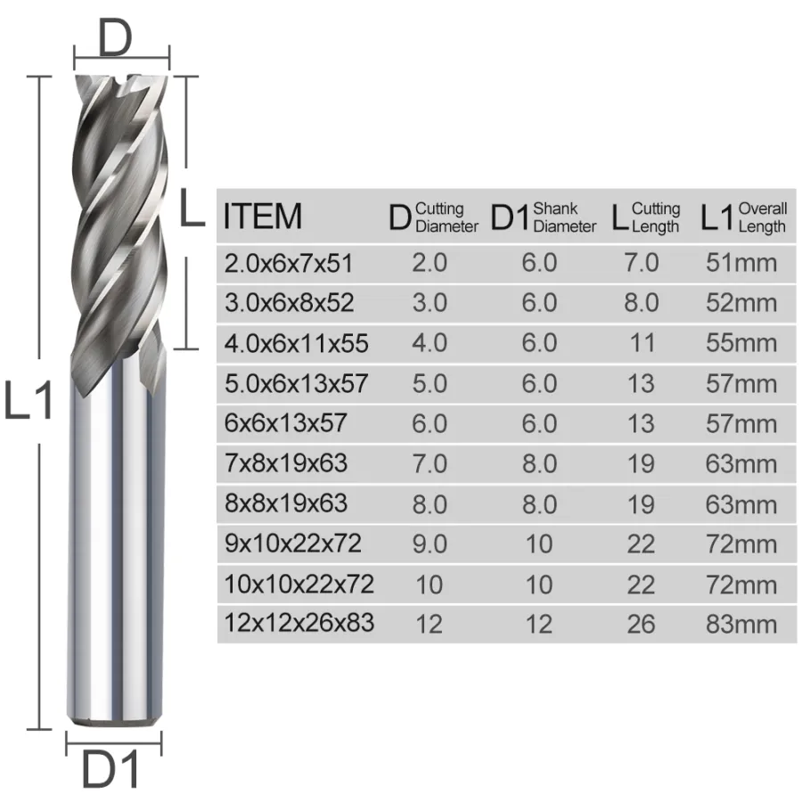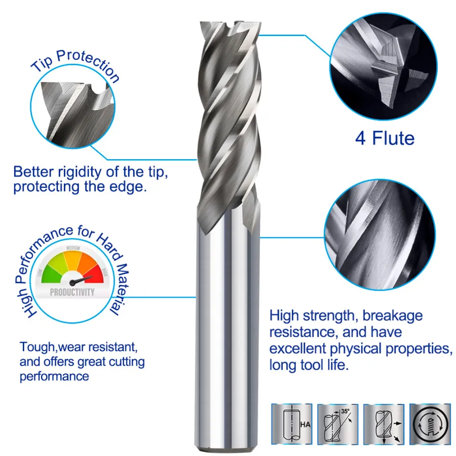4 Flute End Mill :The 4 flute design allows for faster and more efficient milling, making it perfect for high-speed CNC machines.