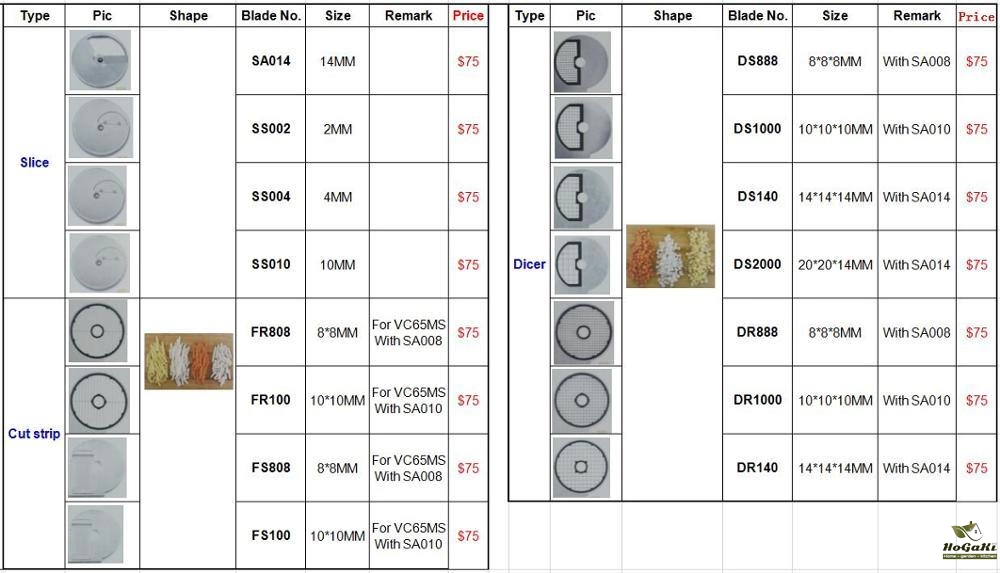 And if you need diced,you need buy two slices.The part only suit for VC60MS/VC65MS Vegetable machine,thanks.