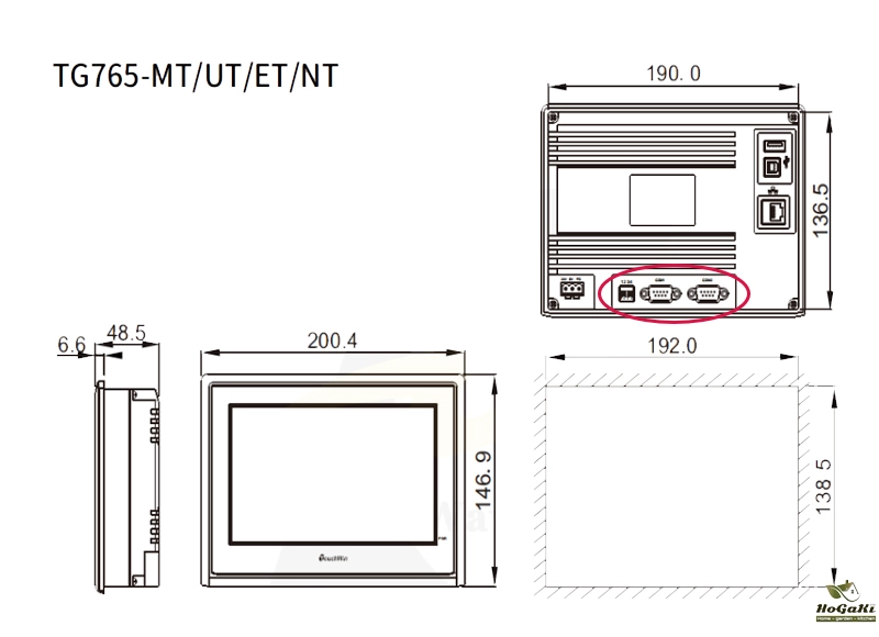 TG765-ET: USB-B interface, USB-A interface, Ethernet interface