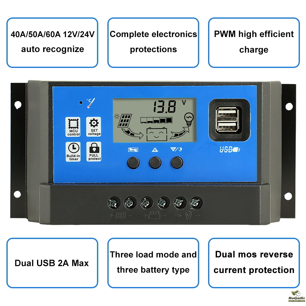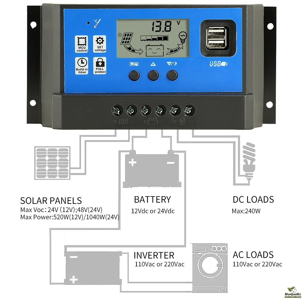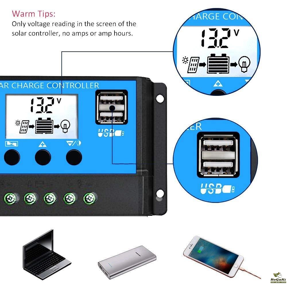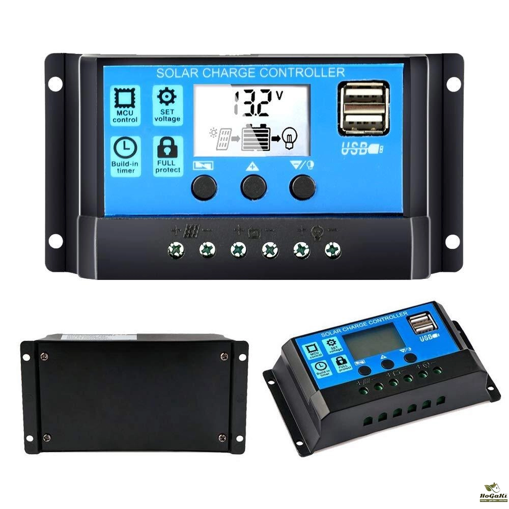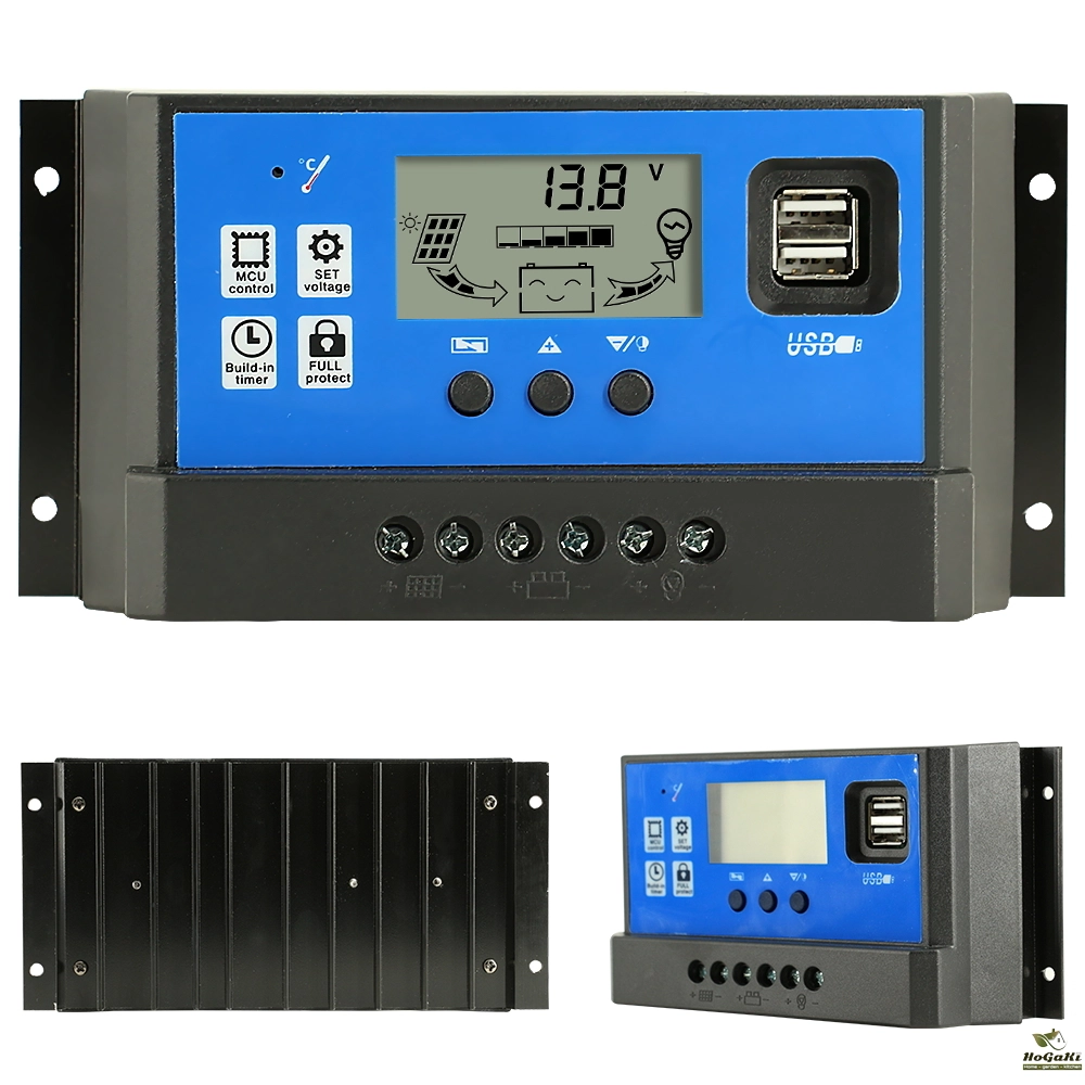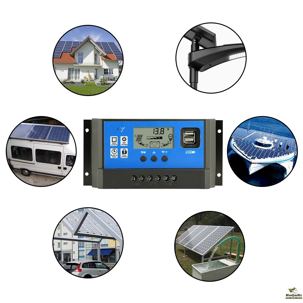 10A 20A 30A 12V 24V Auto Solar cells Panel Battery Charge Controller PWM Solar PV Regulators LCD Display 5V USB