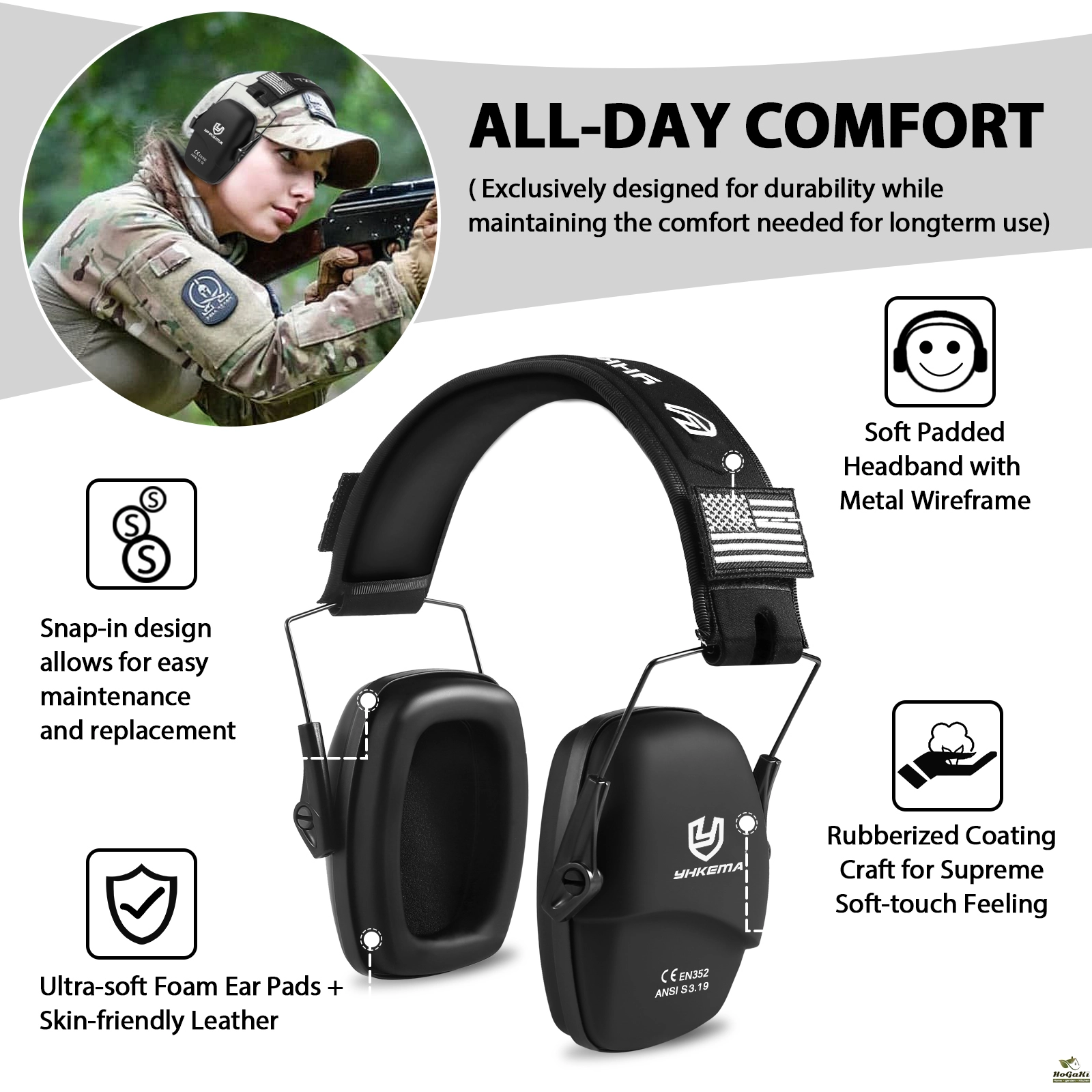 1.[PROFESSIONAL SAFETY EARMUFF]: Featured sound dampening composite housing prevent sound from reaching your ears altogether, you will hear something, Butit's akin to turning down the volume enough to protect your hearing and easier on your ears; The small form factor helps to keep your muffs from getting in the way of what you are doing, making you safer; Low profile cuts-out earcups for firearm stock clearance.