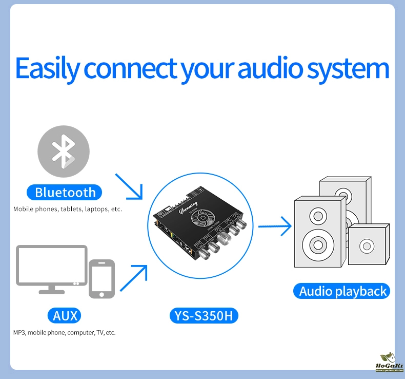 Compared with other amplifier processes YS-S350H TPA3251 has a higherchip area. It also reduces crosstalk and improves sound quality.